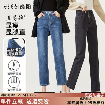 逸阳女裤断码清仓直筒牛仔裤秋季高腰显瘦黑色九分小个子烟管裤子