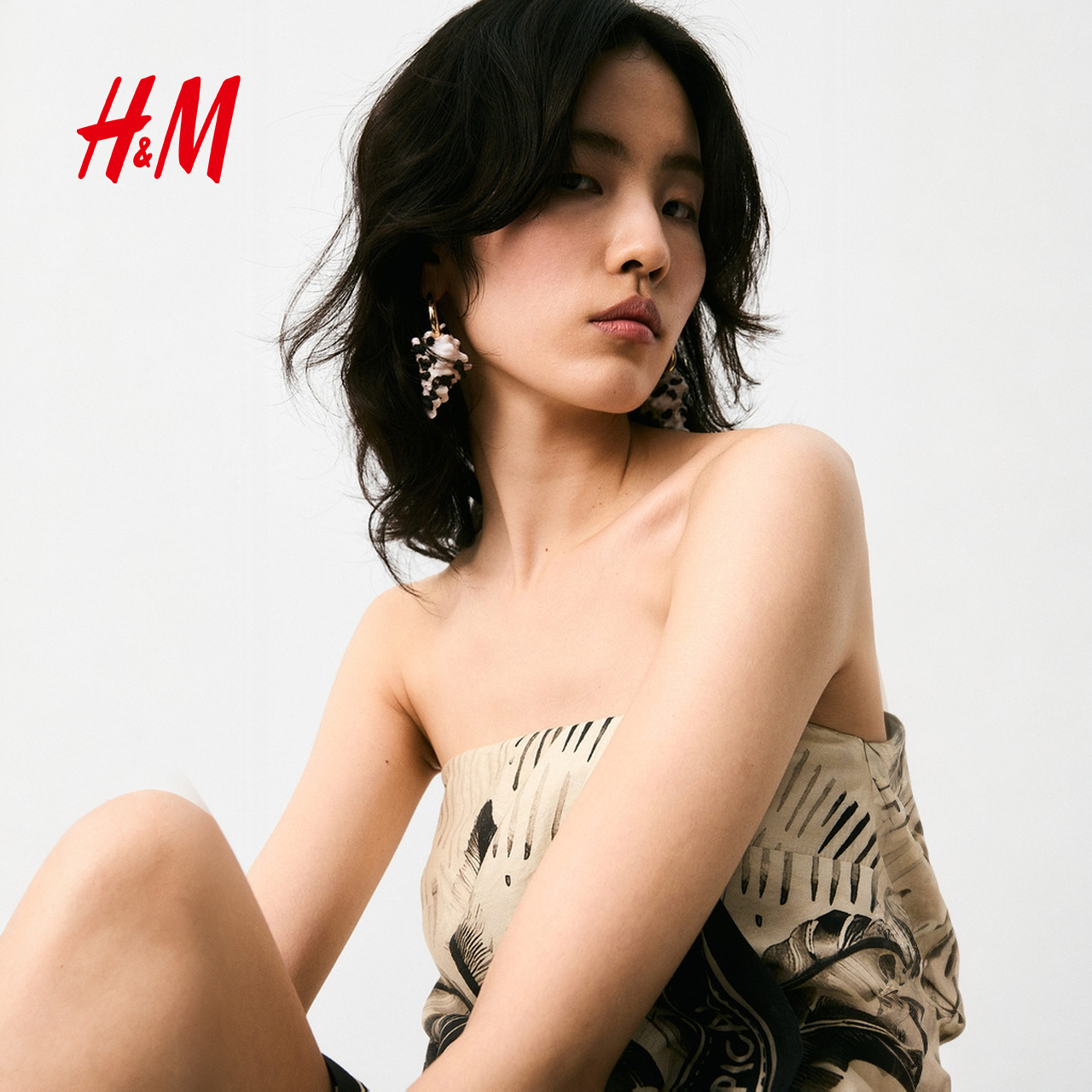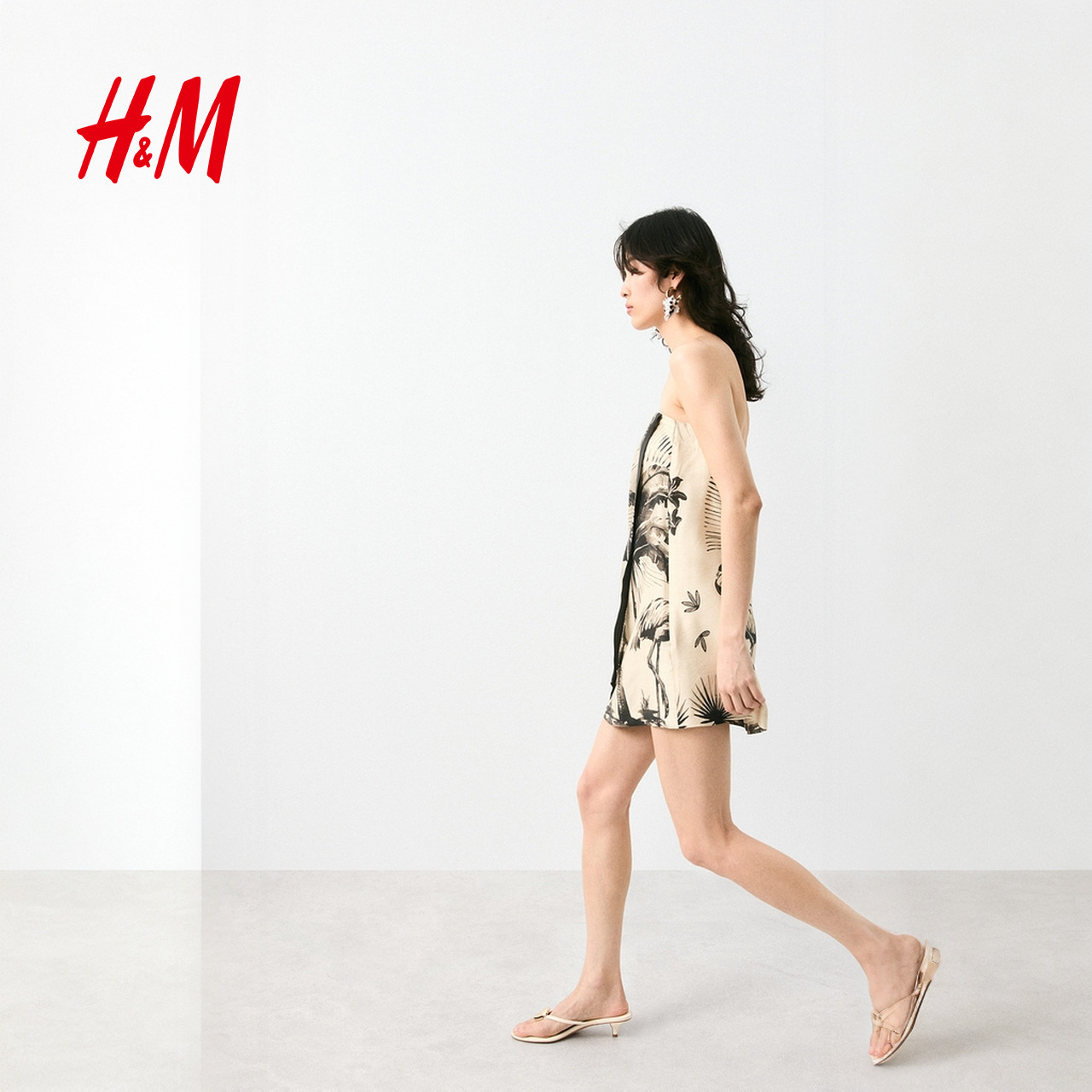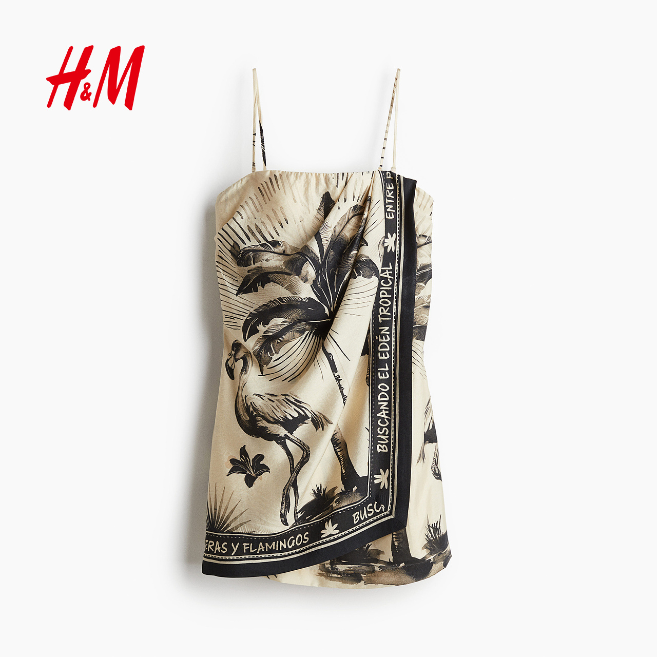 HM女装连衣裙2025夏季新款印花吊带度假风垂坠抹胸连衣裙1293237