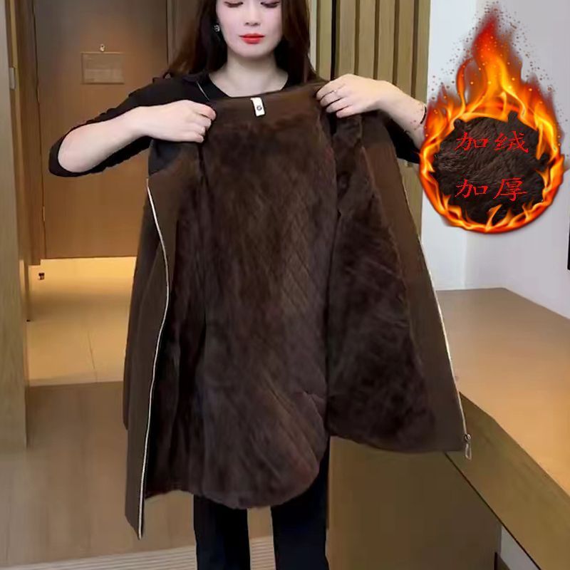 2025冬季中老年妈妈装加绒加厚保暖外套女新款洋气中长款连帽大衣