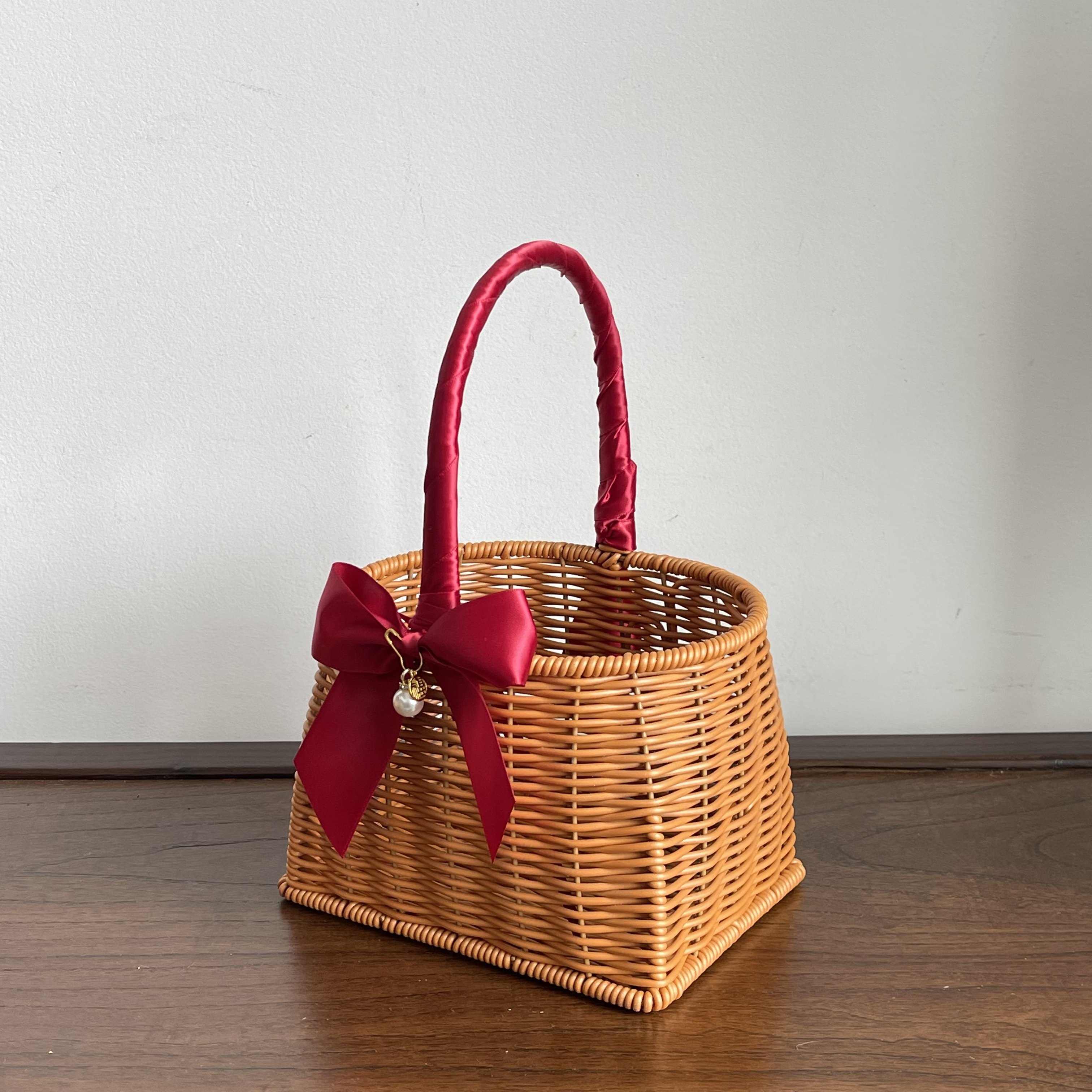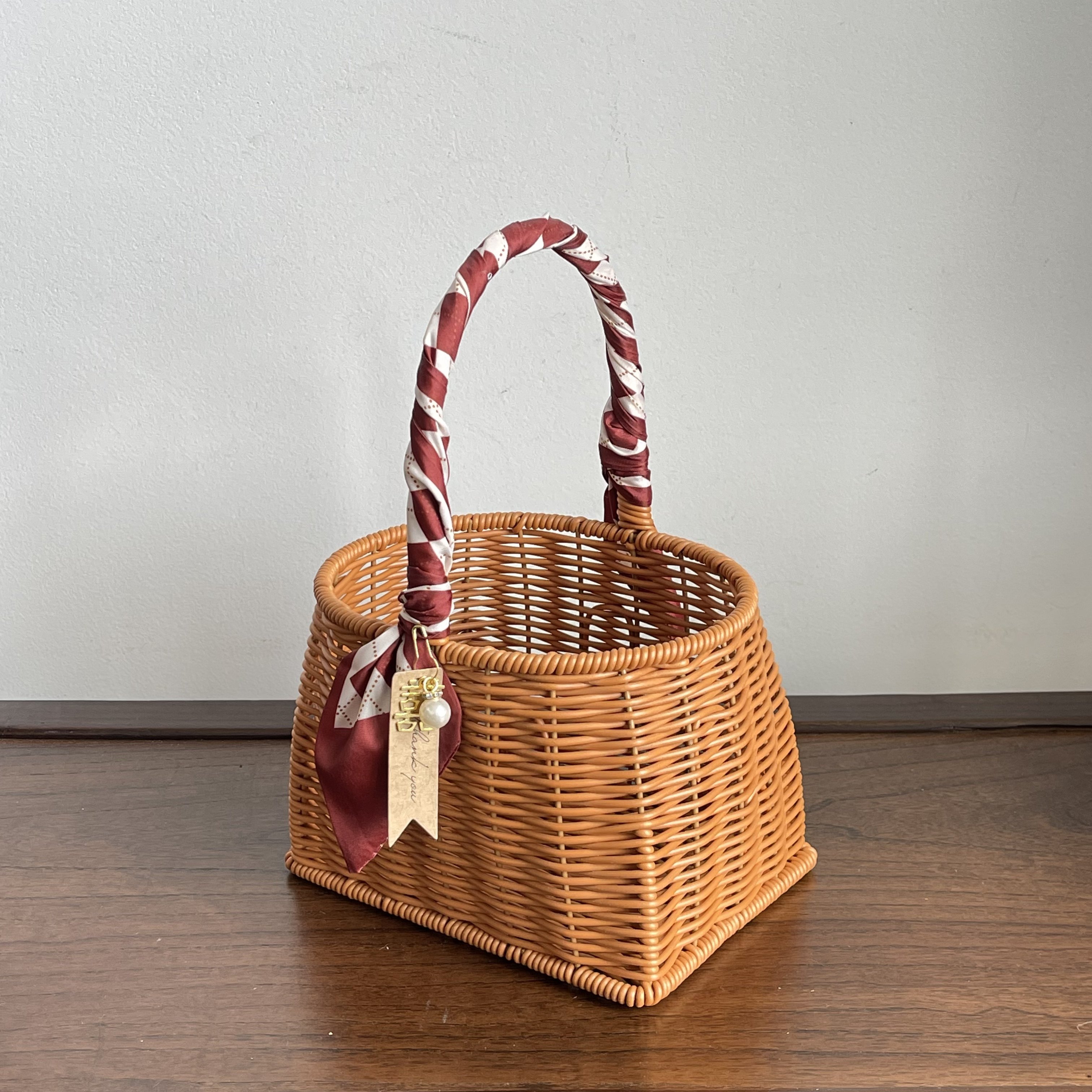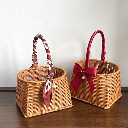 ins风仿藤编竹篮水果礼品婚礼生日提篮儿童满月伴手礼新年篮子