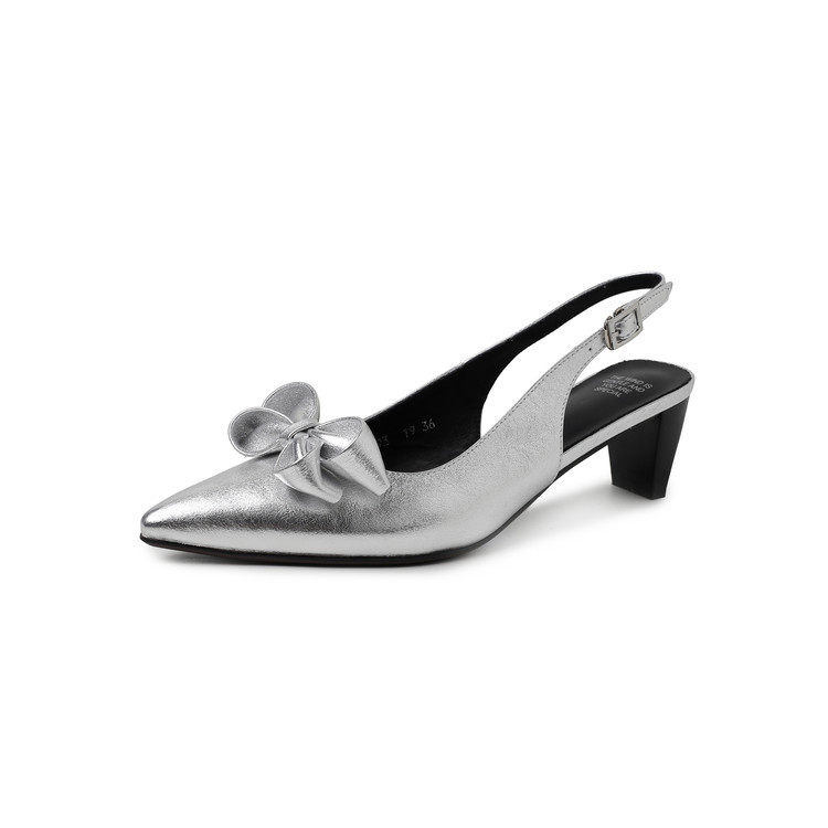 5cm法式后空高跟鞋粗跟尖头蝴蝶结凉鞋2025春夏新款百搭四季鞋女~