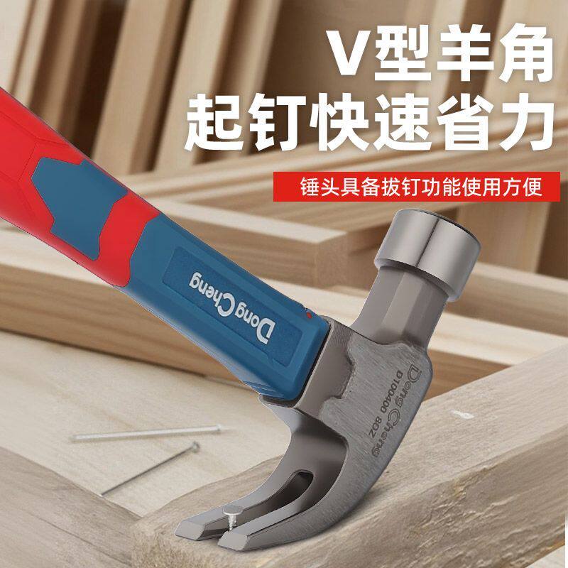 东成羊角锤子八角锤纤维柄连体锤铁榔头木工锤多功能起钉锤老式