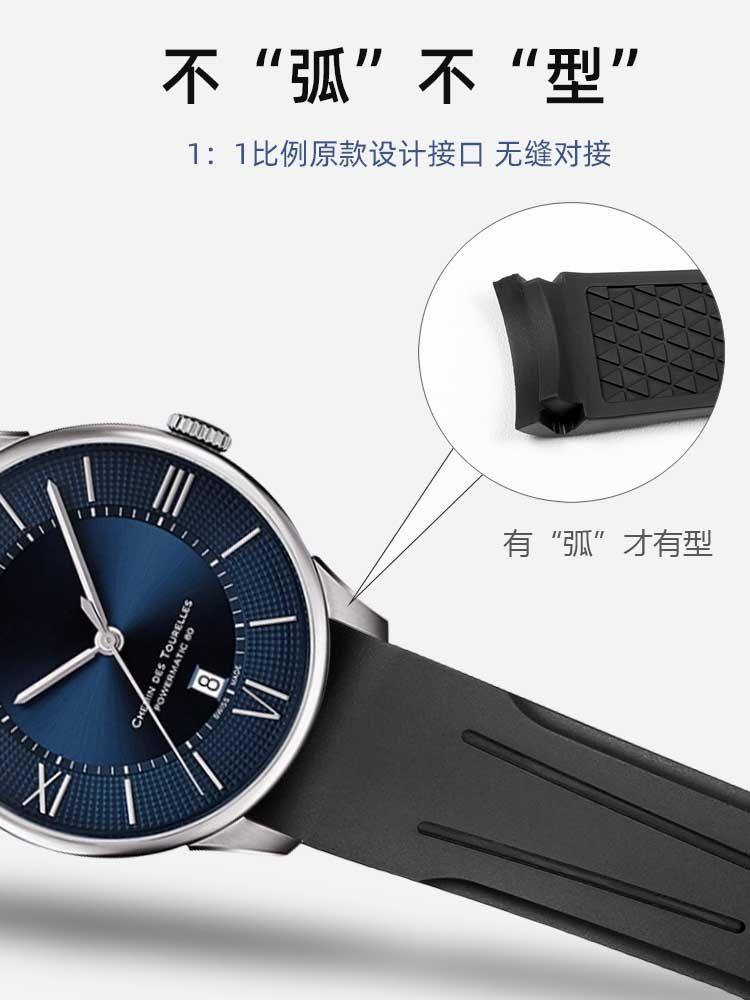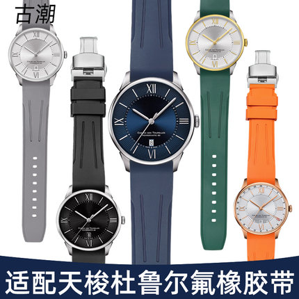 适配天梭1853杜鲁尔氟橡胶手表带 男经典T099原装弧形硅胶带21mm