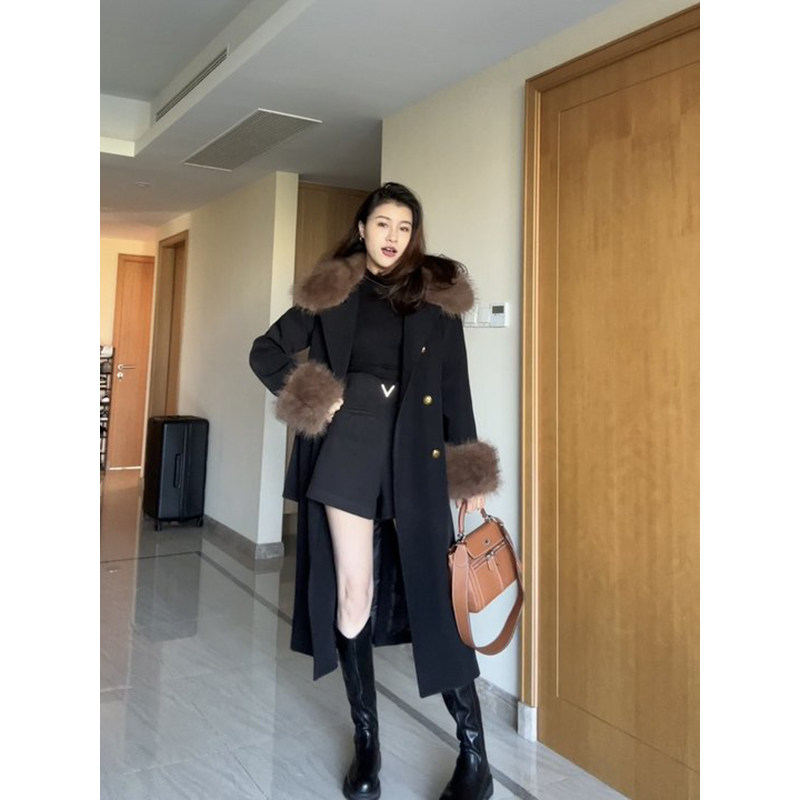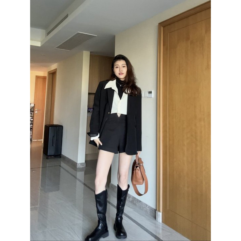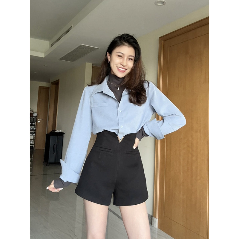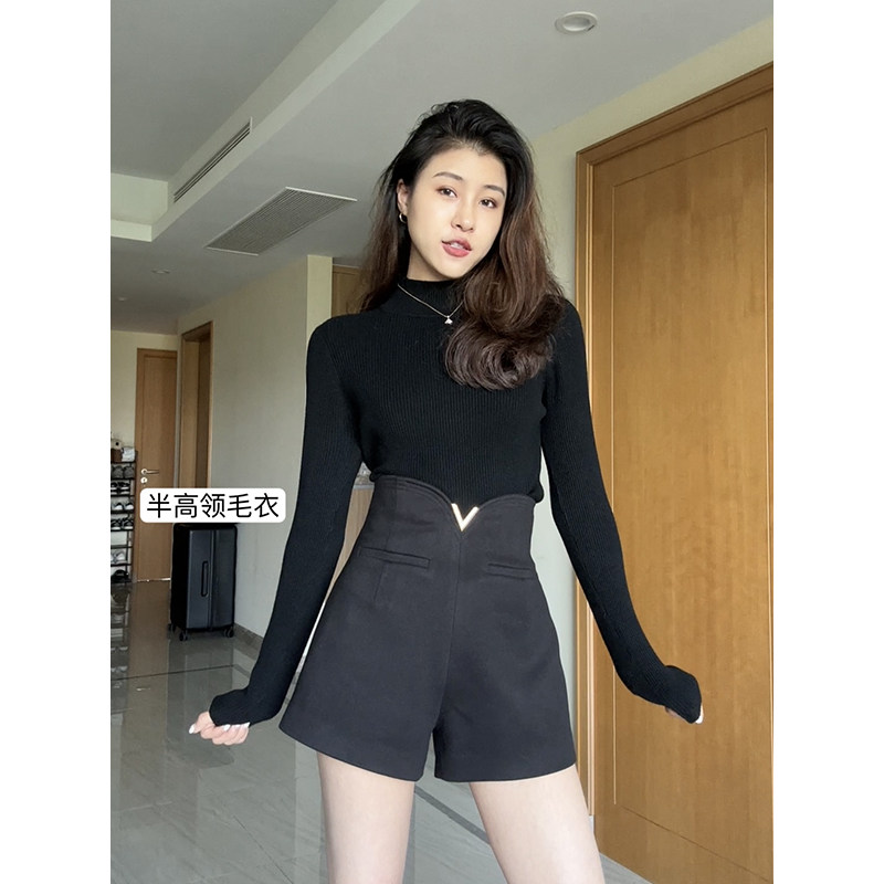 张阿星【花瓣腰】冬季新款高腰收腰时尚百搭加厚A字靴裤毛呢短裤