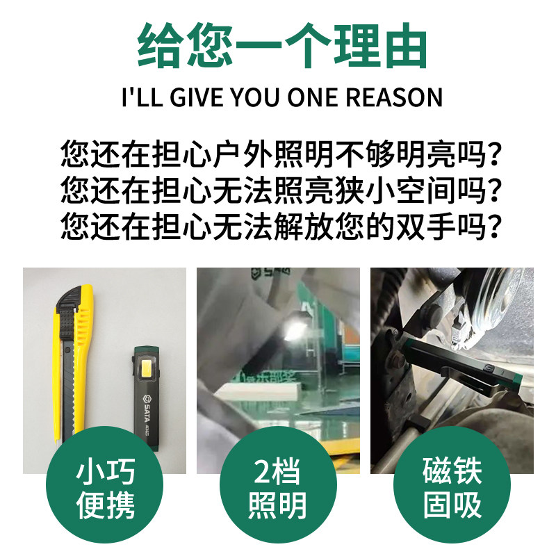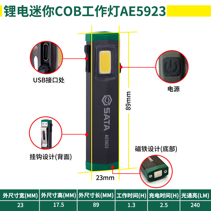 世达锂电防水工作灯汽修便携高亮充电迷你修车用手电抓知了猴神器