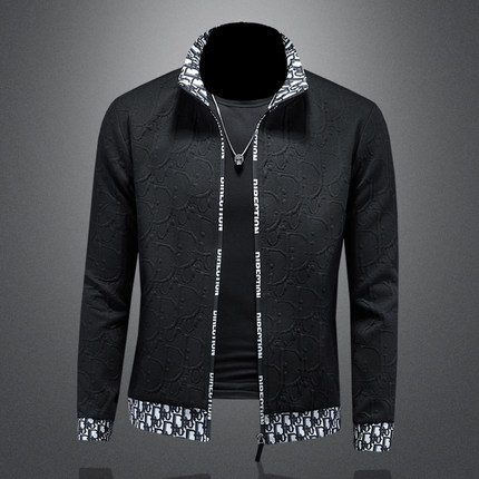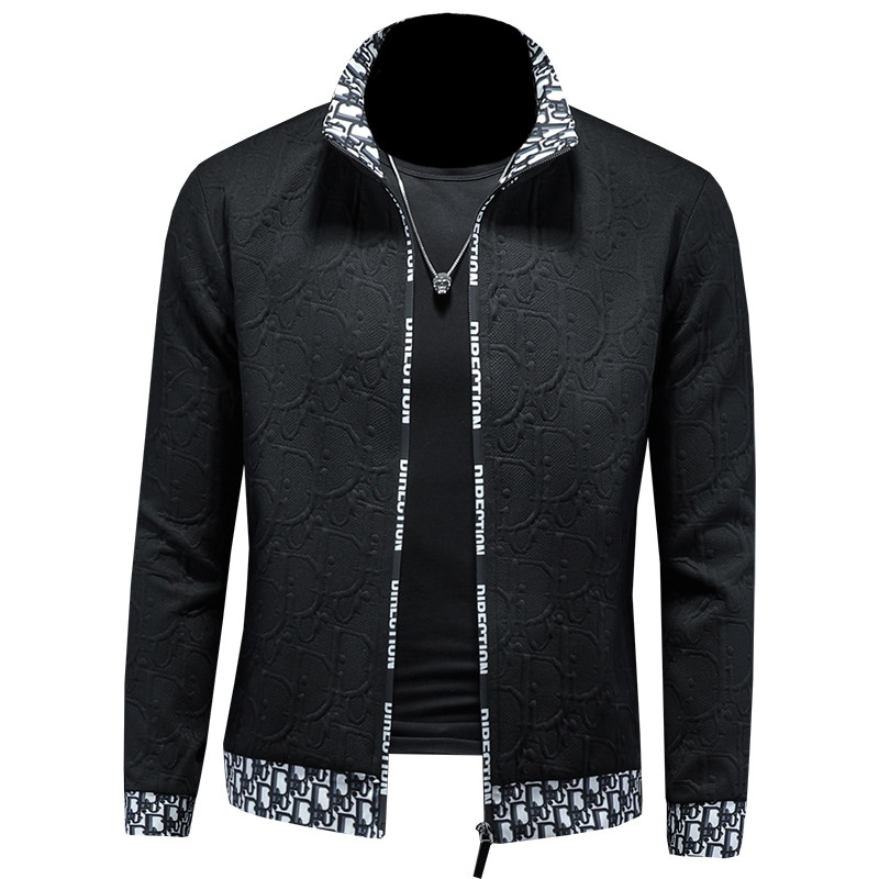 高端潮流男士立领夹克提花修身青年韩版春季薄款百搭个性帅气外套