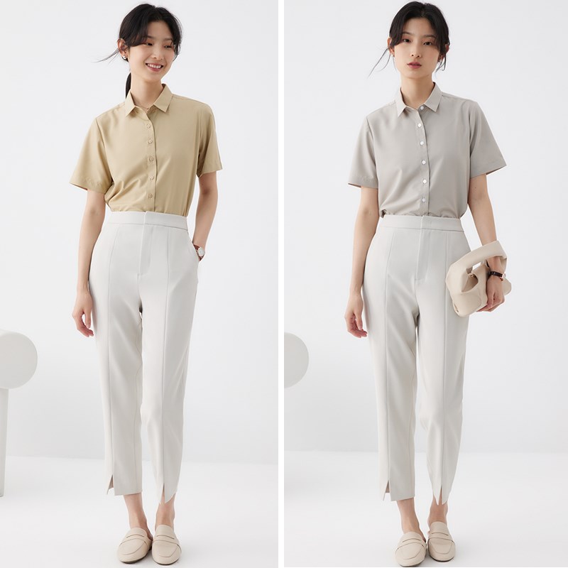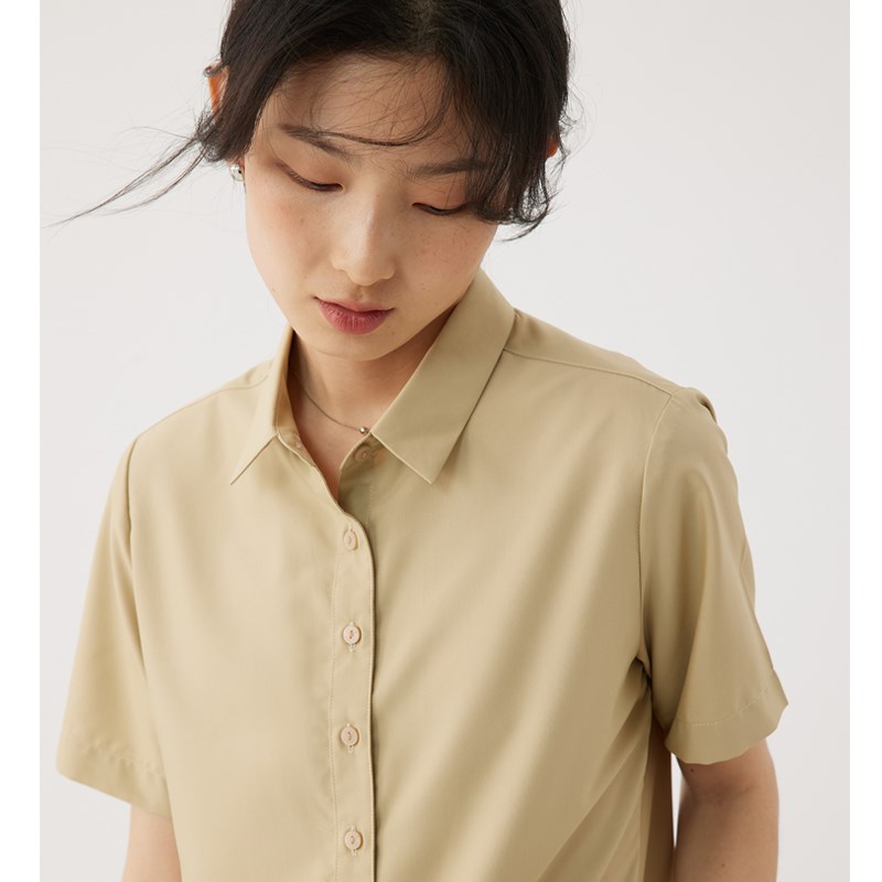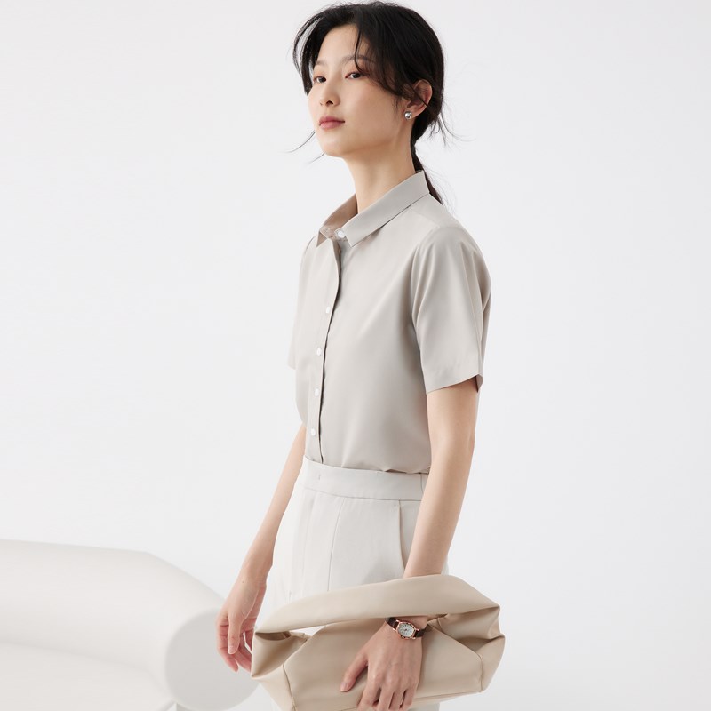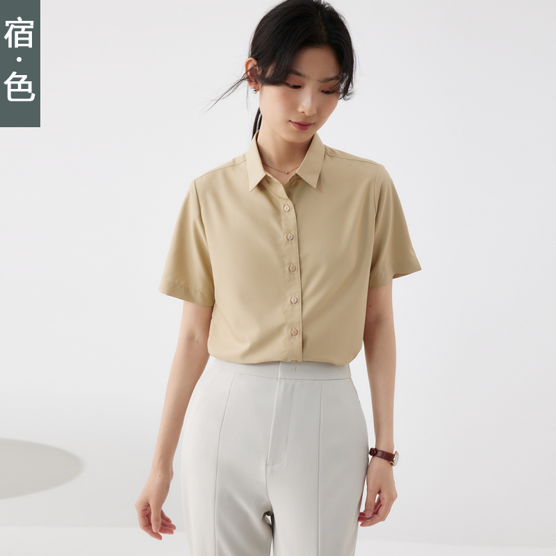 宿色衬衫女夏季短袖设计感气质上衣小翻领高端工作服职业衬衣