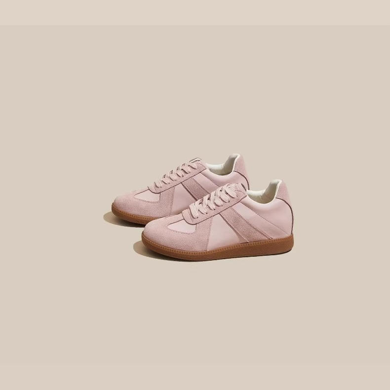 小个子内增高系带女鞋银色德训鞋2024春夏新款休闲真皮板鞋女款