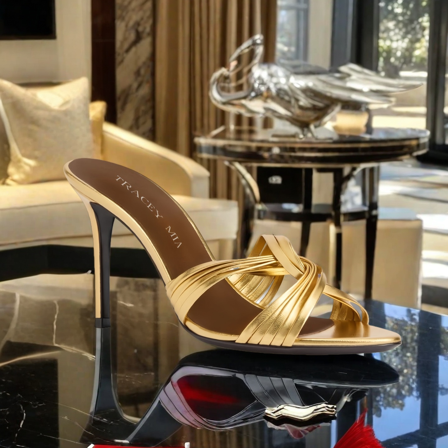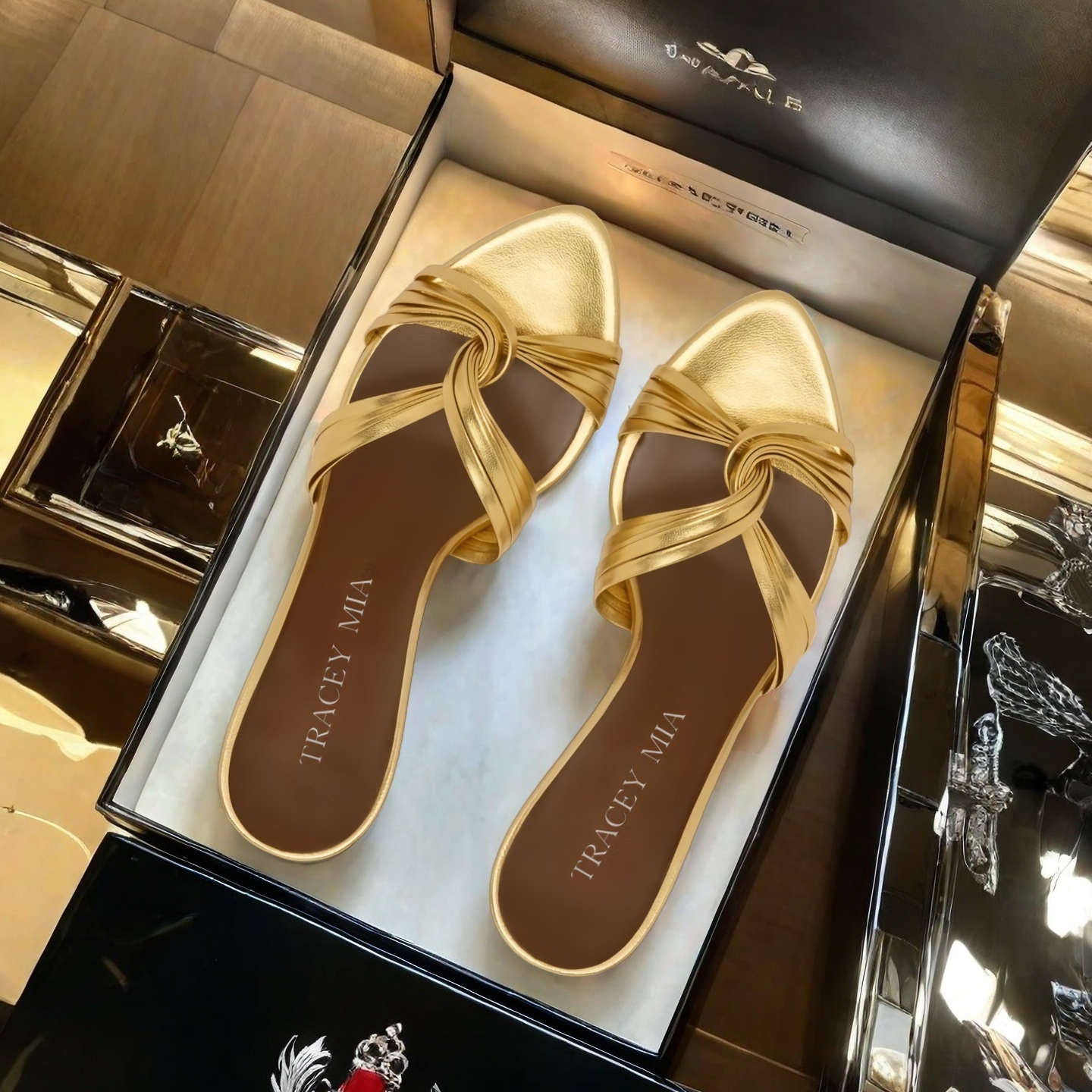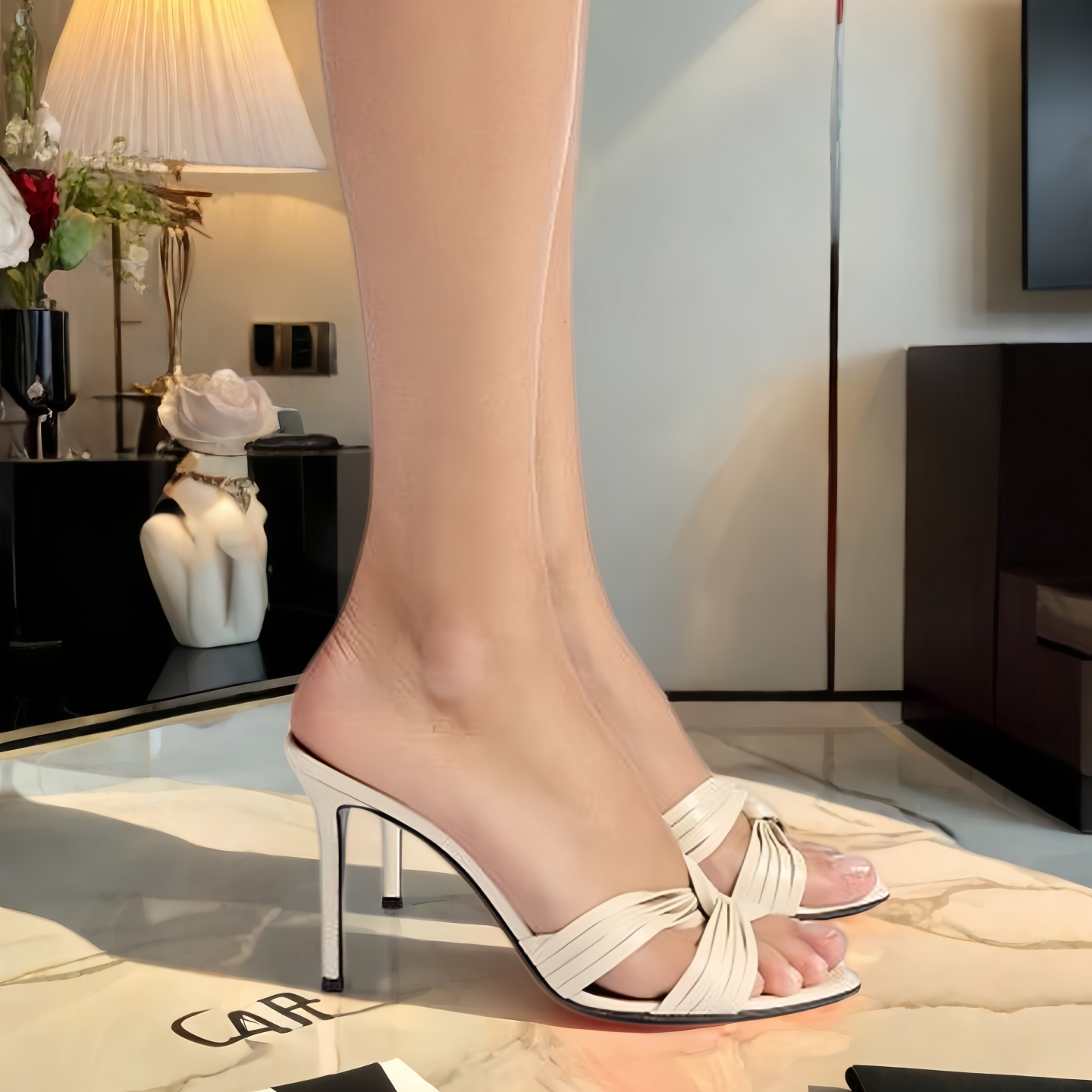 一字带细带交叉漆皮露趾凉拖