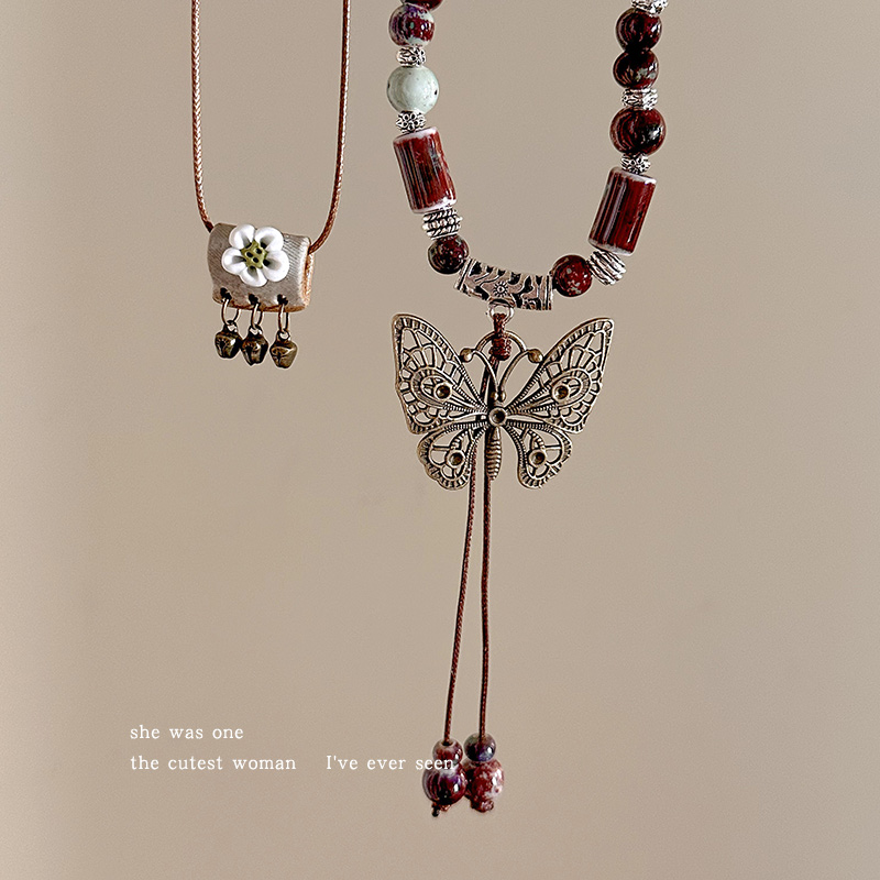 波西米亚复古蝴蝶串珠项链女配饰新中式颈链锁骨链叠戴百搭毛衣链