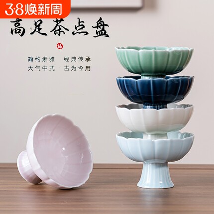 高脚青瓷陶瓷果盘茶点盘陶瓷中式