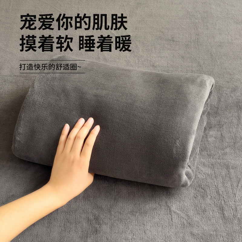 无印良品牛奶绒床单单件加绒加厚秋冬季法兰珊瑚绒床笠三件套毛毯
