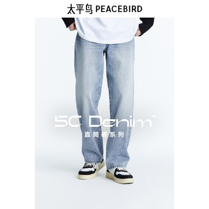 【断码钜惠】太平鸟男装奥莱阔腿牛仔裤男美式复古蓝色牛仔长裤