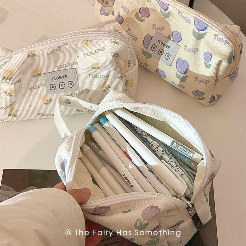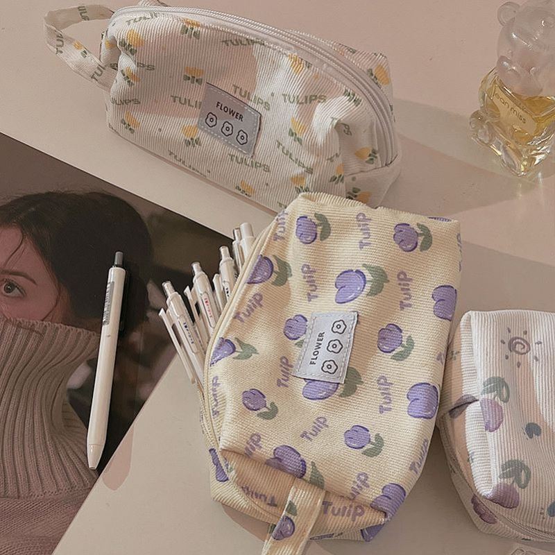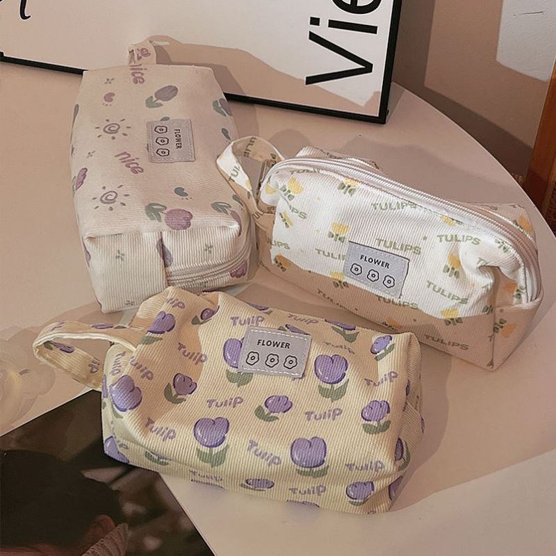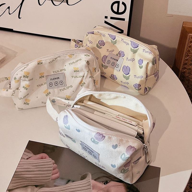 韩系复古郁金香小众笔袋简约可爱便携文具盒大容量高颜值笔盒少女心收纳袋化妆包初高中生高颜值铅笔袋