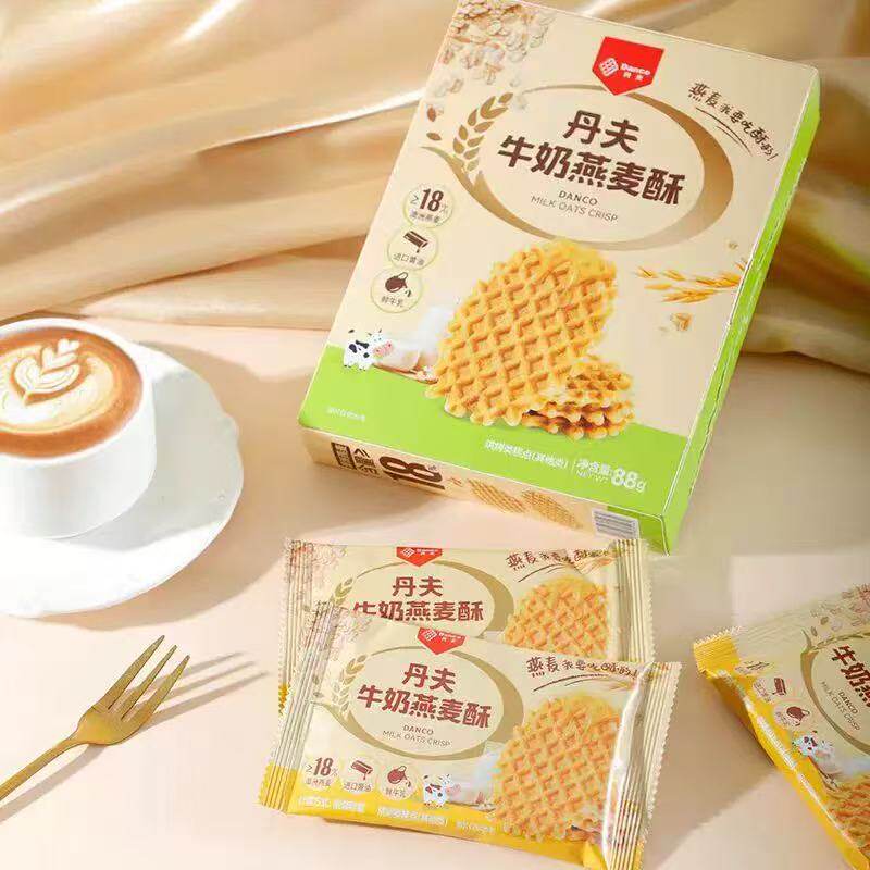 丹夫牛奶燕麦酥巧克力薄脆华夫饼干网红瓦夫零食奶油酥饼
