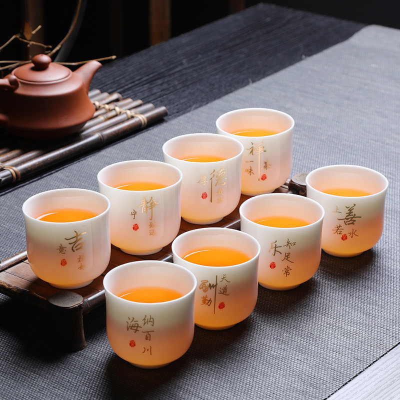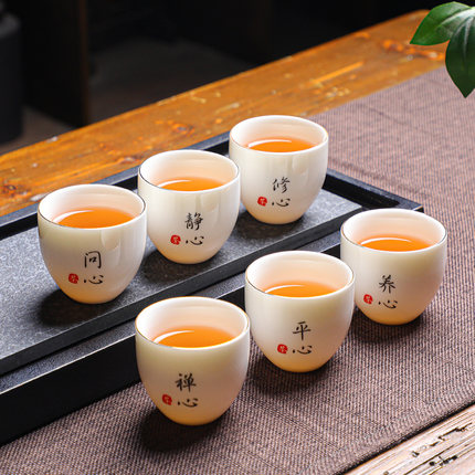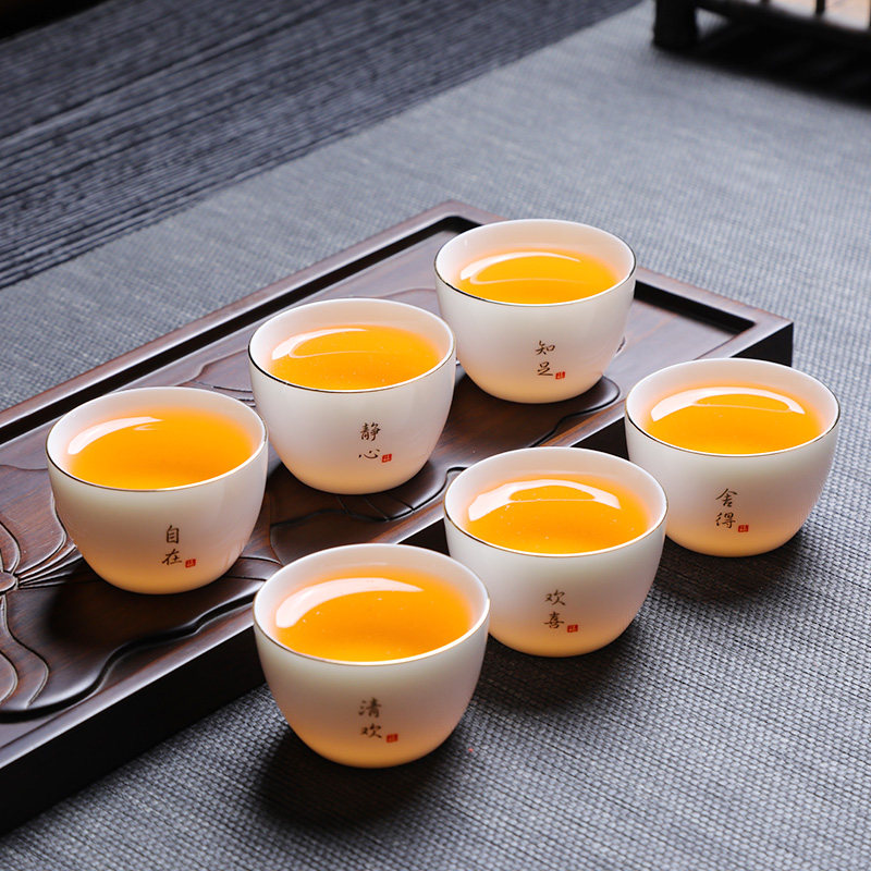 茶杯羊脂玉功夫茶具6个陶瓷小茶杯喝茶主人杯商务派对家用品茗杯