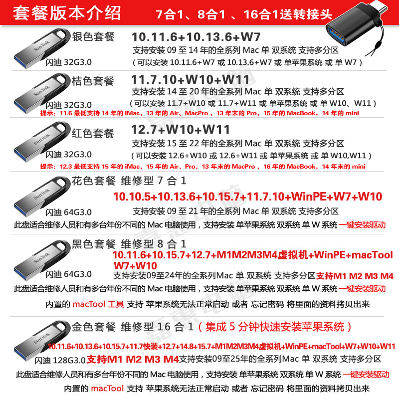 苹果电脑macOS双系统安装U盘 多分区15.5 M芯片恢复启动 重装闪迪