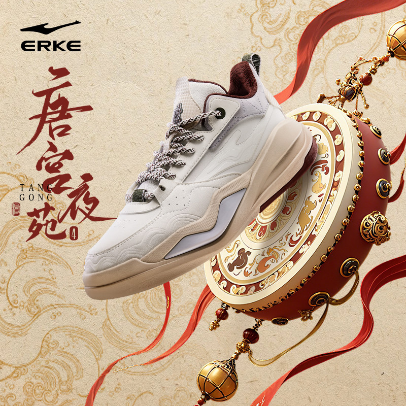 唐宫夜宴4鸿星尔克男鞋2026春季新款红色青少年学生运动高帮鞋