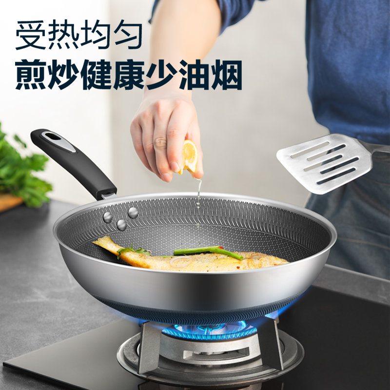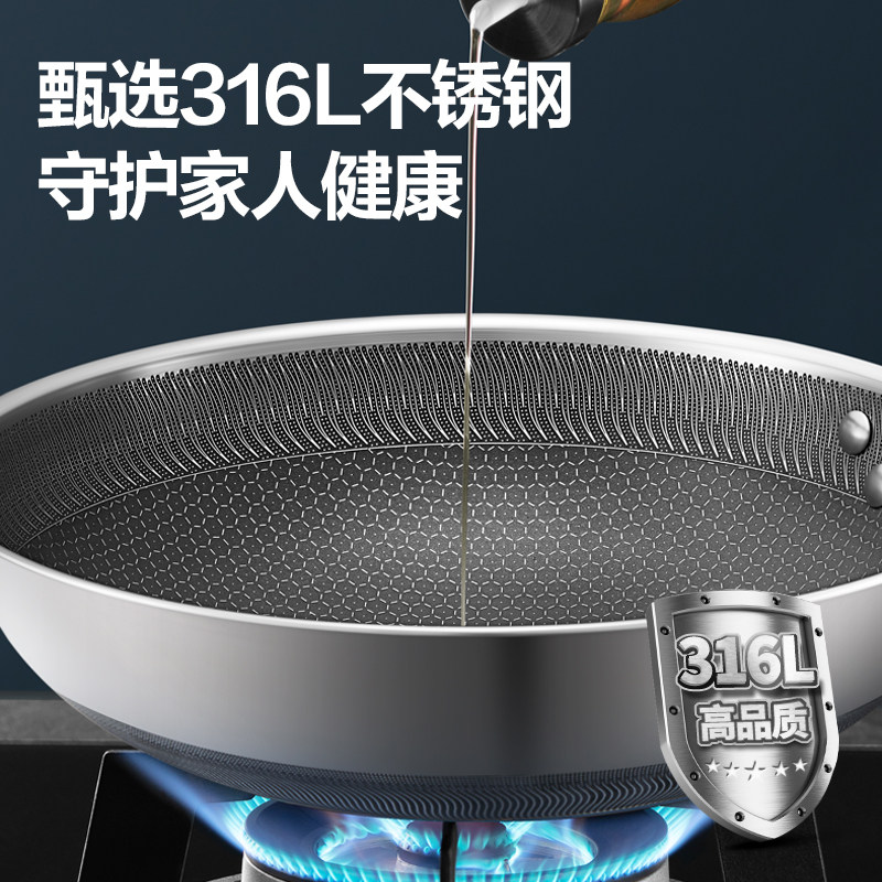 苏泊尔不粘锅蜂窝316L不锈钢双面屏炒菜锅电磁炉燃气灶通用