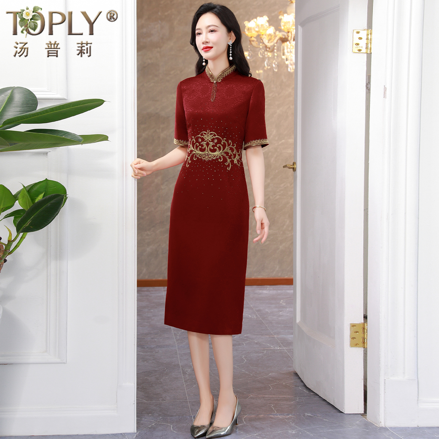 2025秋新款婚宴妈妈旗袍连衣裙女