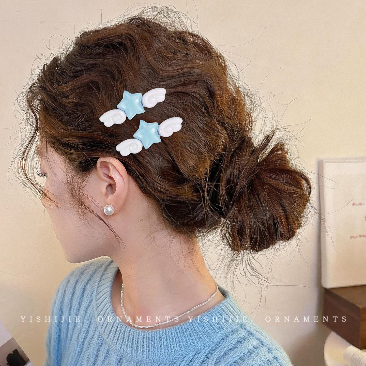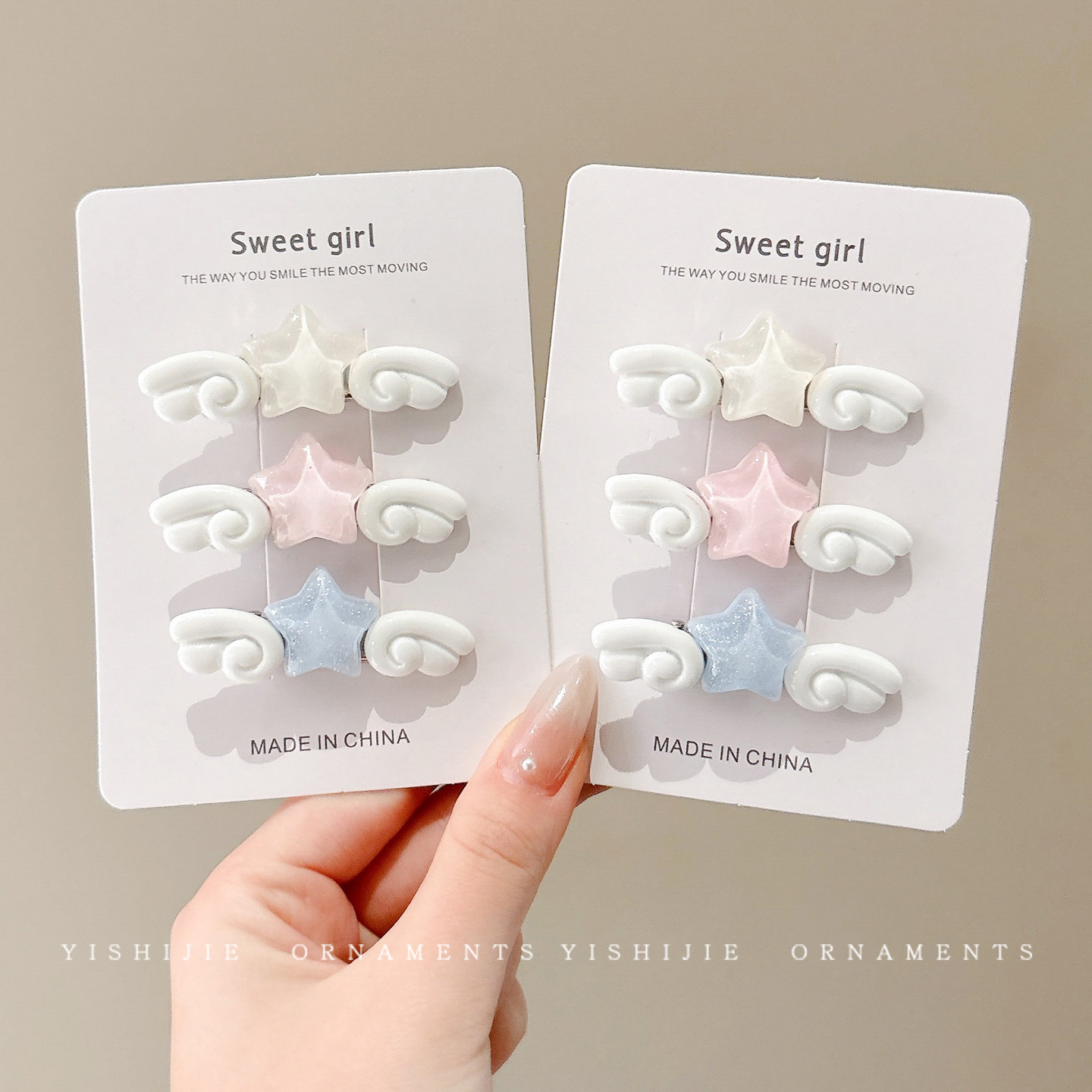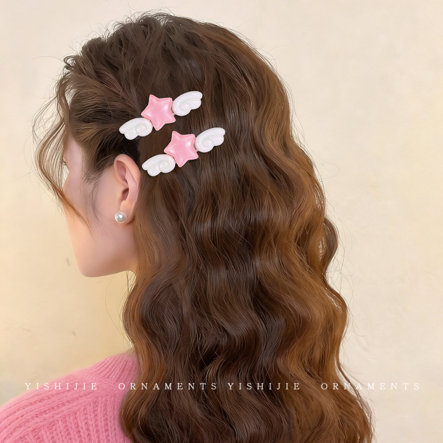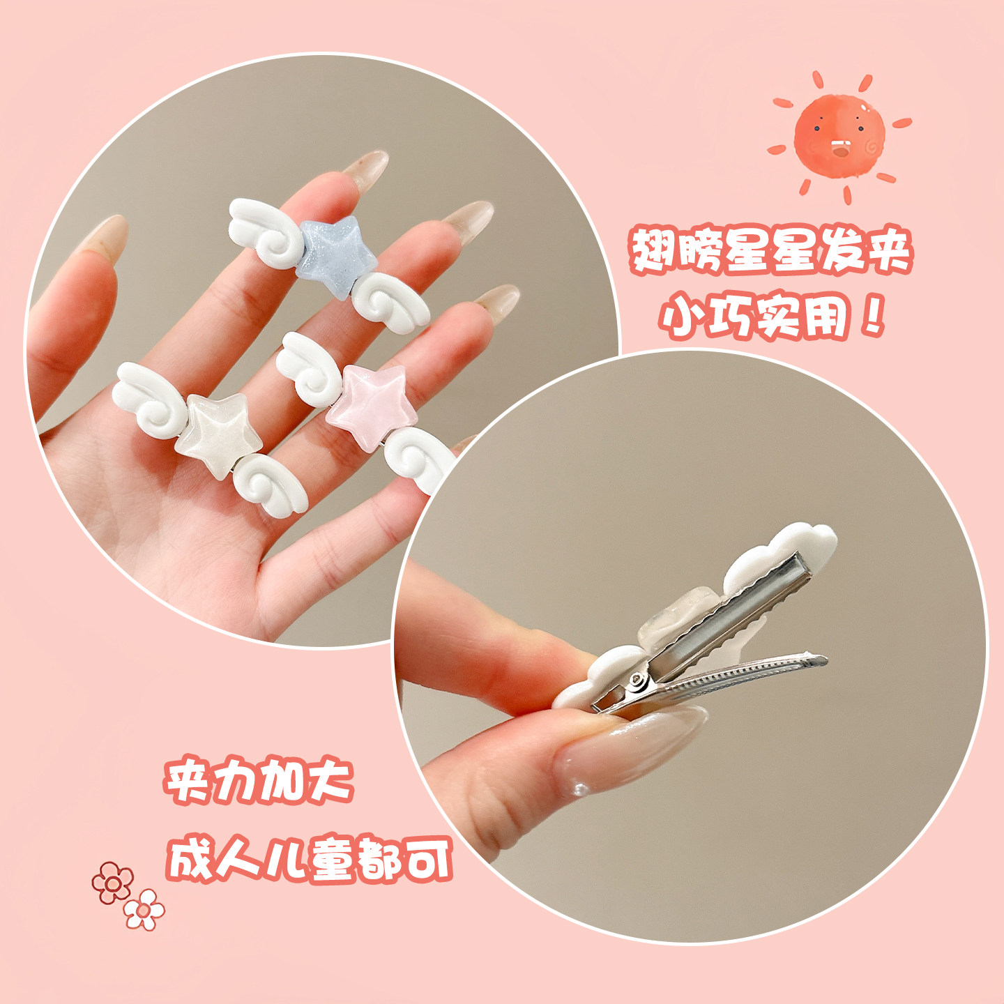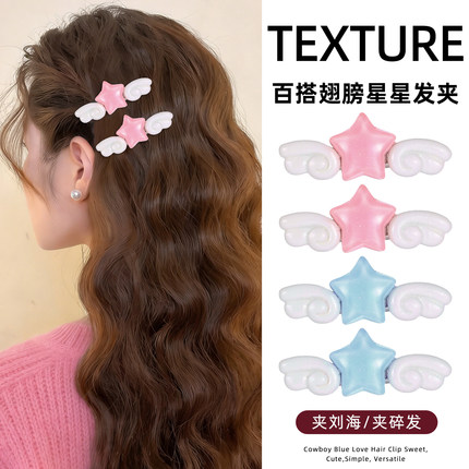 彩色星星天使翅膀发夹女独特漂亮边夹侧边刘海夹甜美可爱发卡头饰