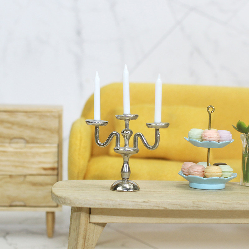 微缩食玩烛台烛光晚餐用品1:12分ob11娃娃屋模型复古diy蜡烛F109