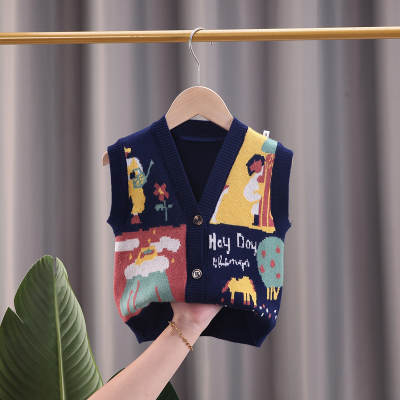 新款英伦时尚春秋婴儿童装马甲毛衣男女小童宝宝针织开衫背心外穿