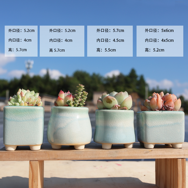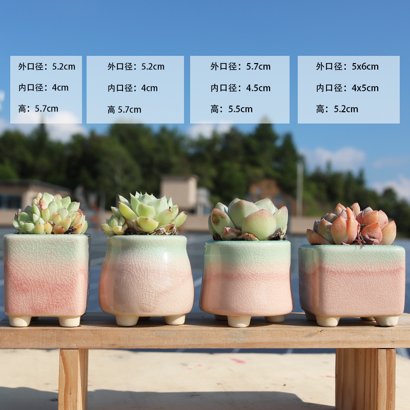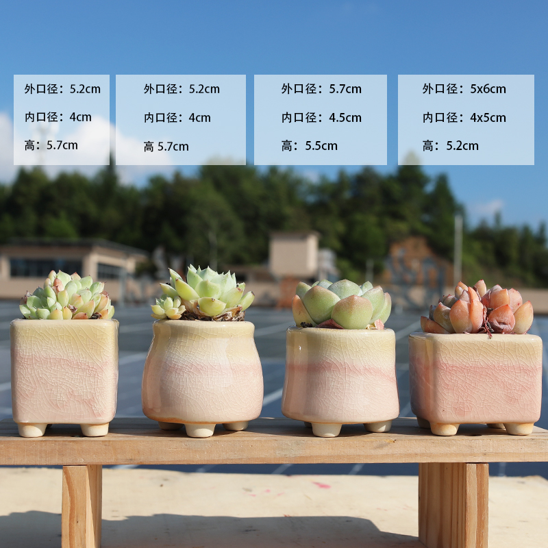 ins多肉花盆陶瓷迷你简约冰裂流釉彩虹流釉拇指盆阳台方形盆套组