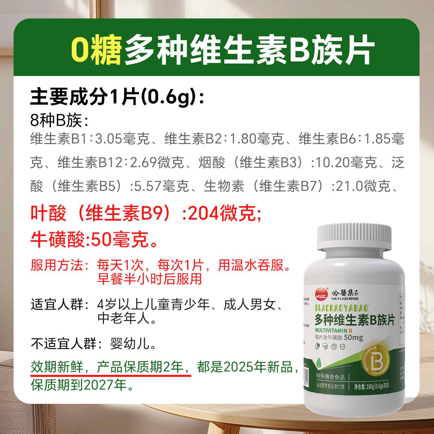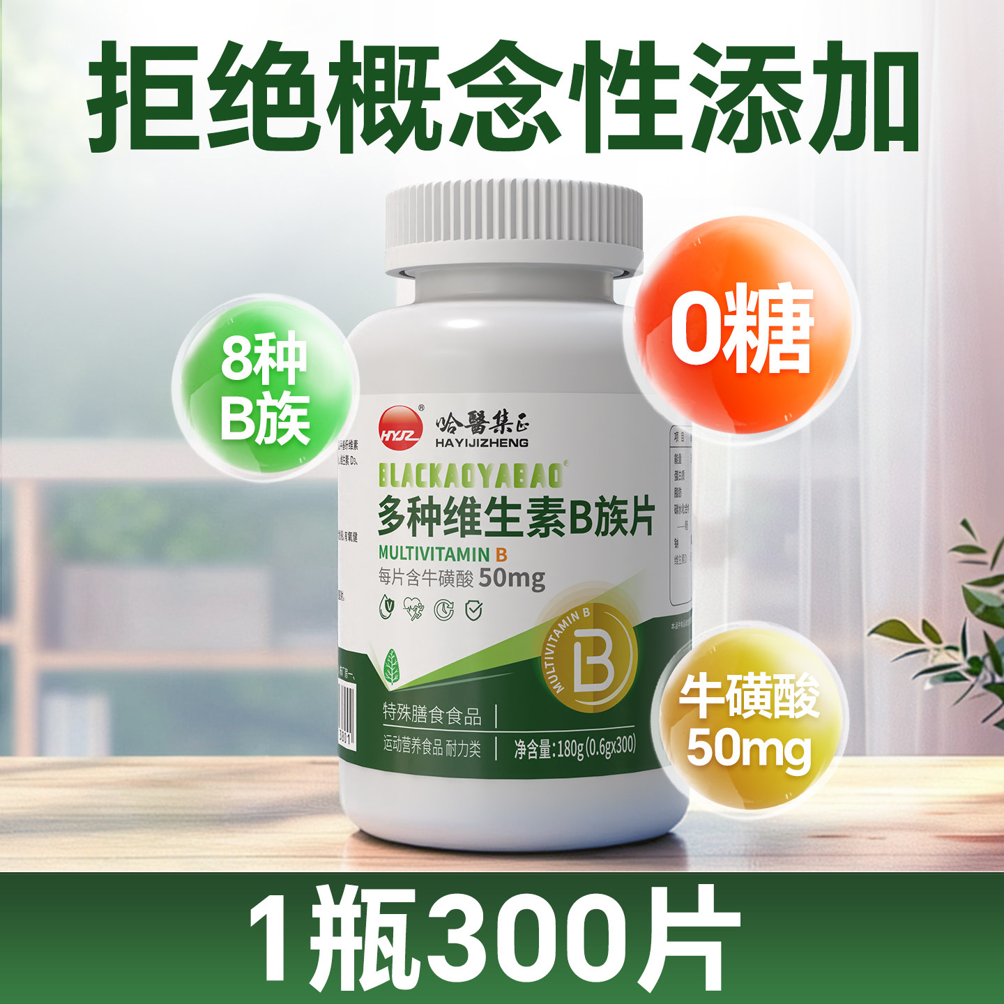 哈医集正0糖300片无糖复合多种维生素B族片成人男士女性VB叶酸b1