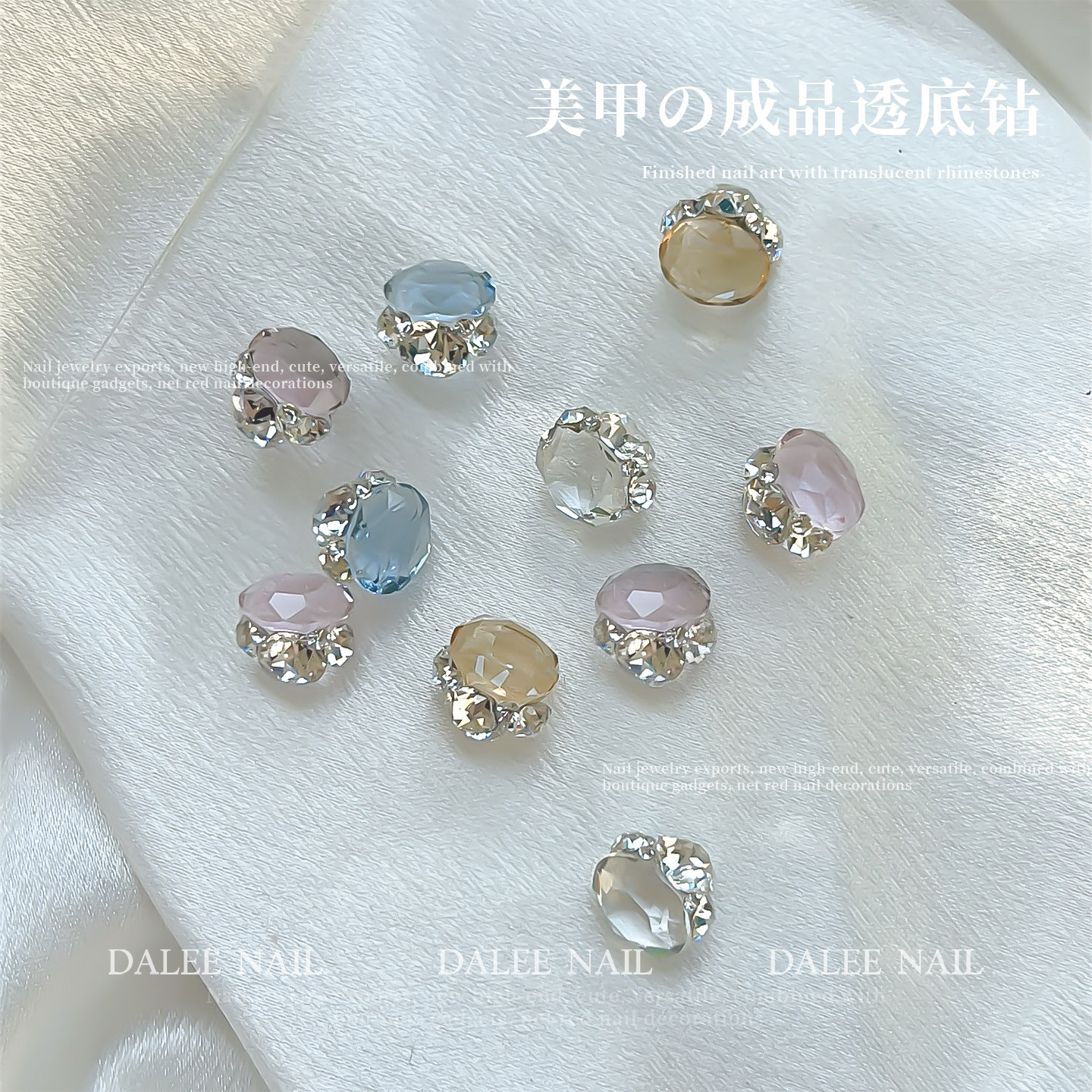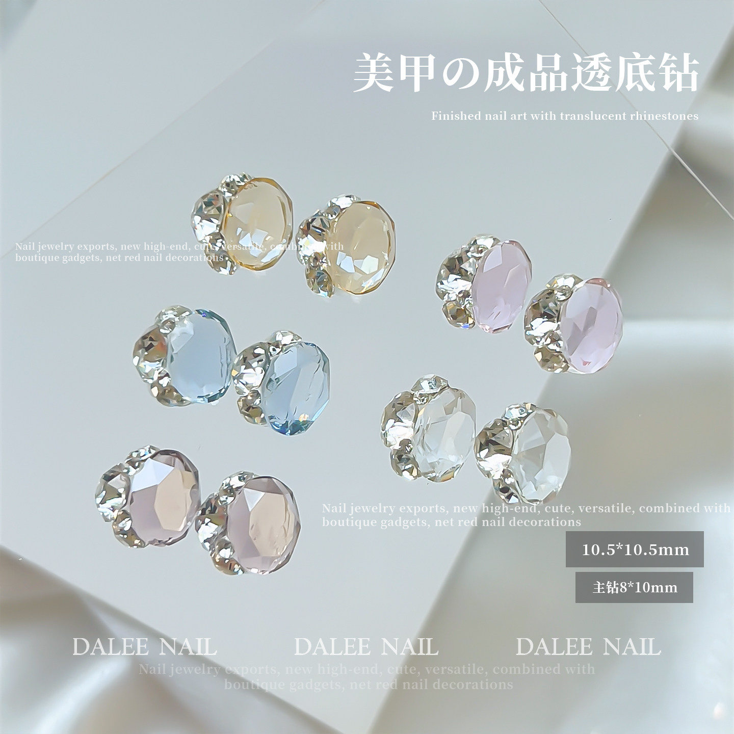 美甲成品透底钻冰透色堆钻