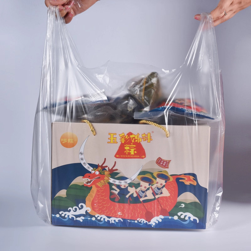 白色食品级塑料袋外卖打包方便袋透明背心胶袋商用袋子早餐专用袋