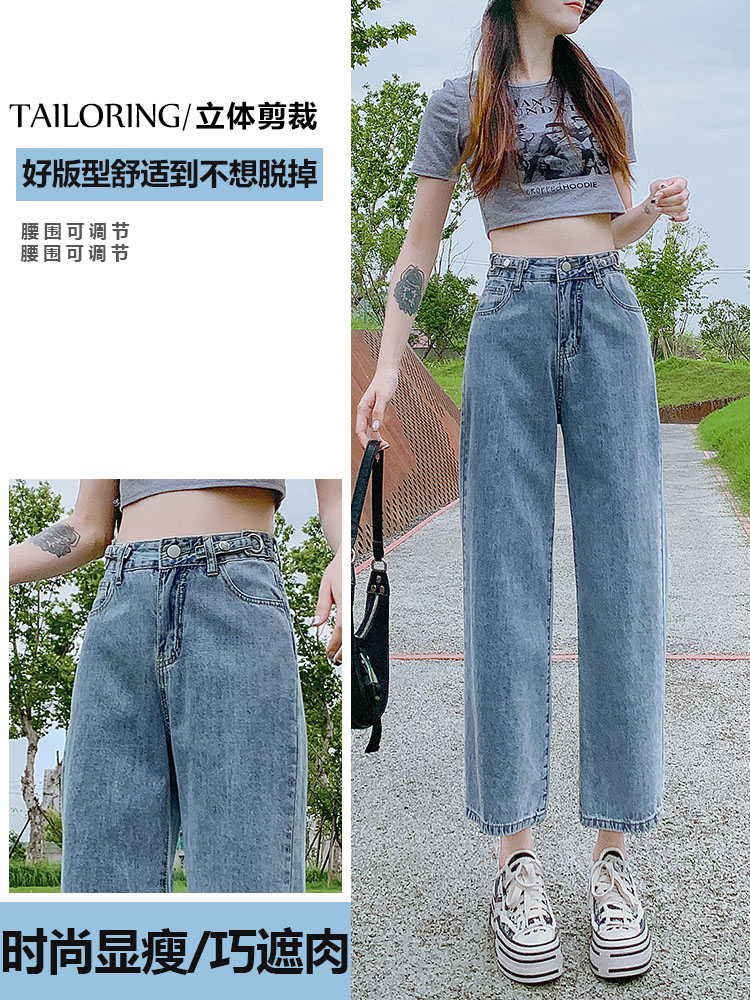 高腰直筒牛仔裤女夏春薄款八九分