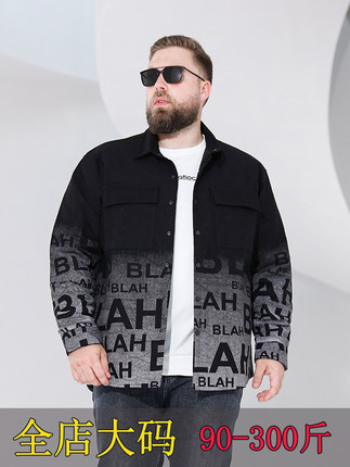 大码男装夹克衫春秋新款潮胖子外衣加肥加大风衣宽松肥佬休闲外套