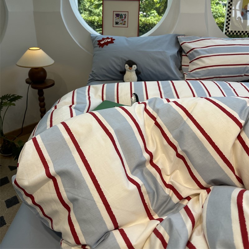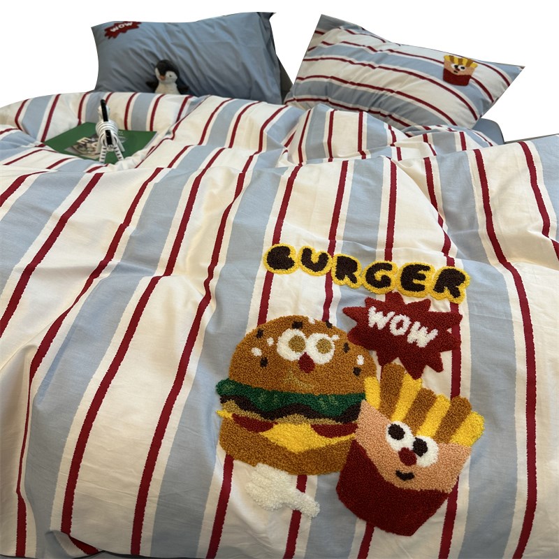 卡通汉堡薯条毛巾绣全棉纯棉四件套1.5m1.M8米公寓被套床单三件套