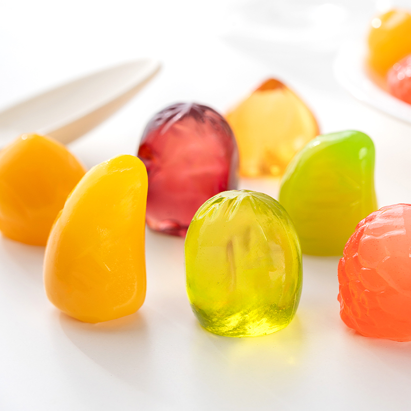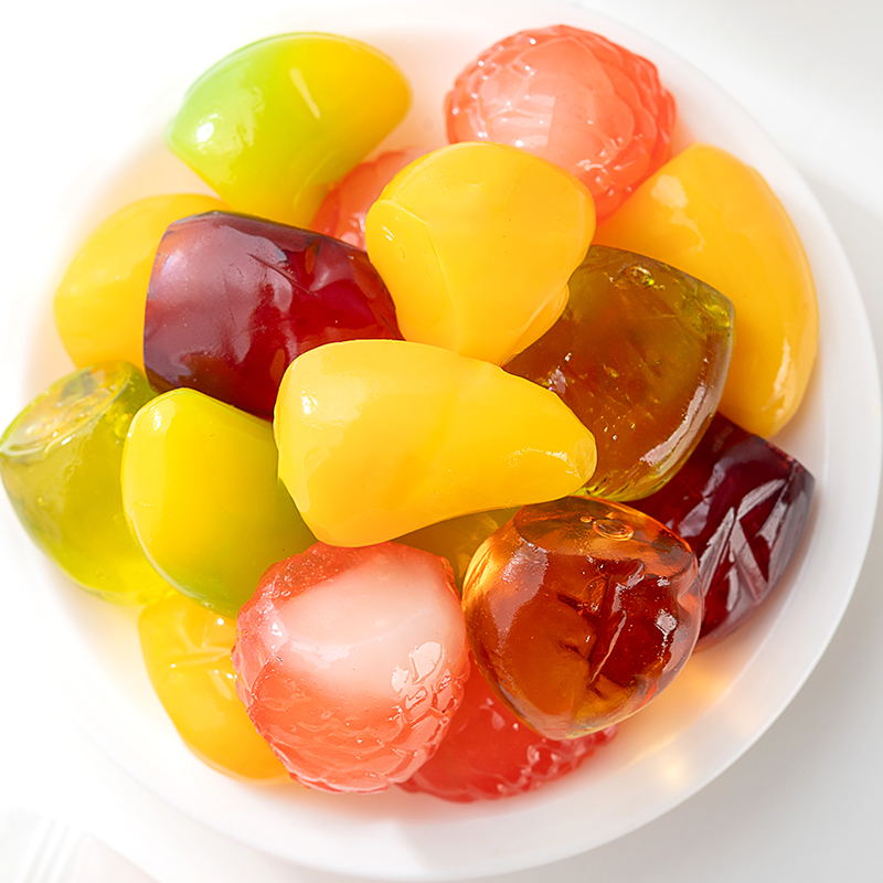 大桶装混合水果剥皮软糖500g芒果水蜜桃青芒荔枝芒果黄桃零食喜糖
