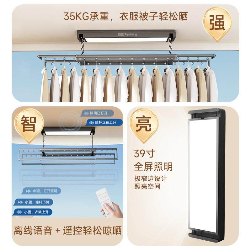 顶固电动晒衣架超薄智能隐形晾衣机家用阳台语音升降伸缩晾衣杆D6