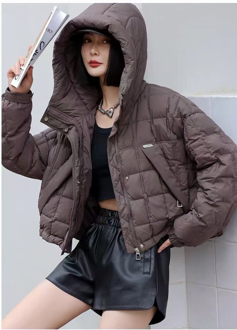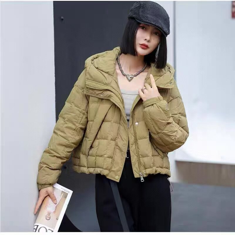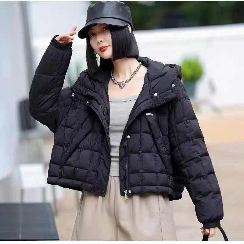 2025新款冬季短款轻薄羽绒服女款连帽保暖白鸭绒外套