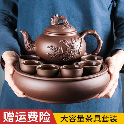 紫砂茶具茶壶套装大容量紫砂壶梅花壶家用宜兴功夫茶具泡茶壶茶杯