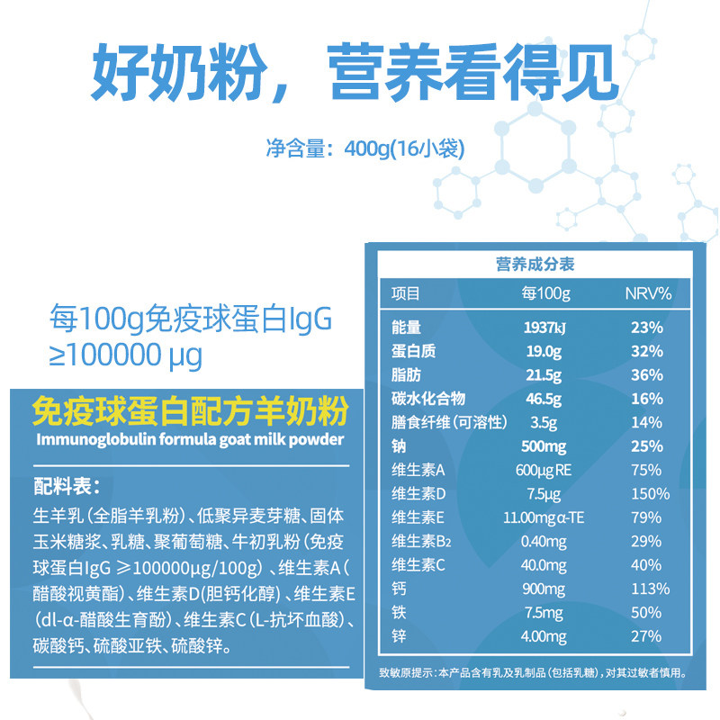 飞天牧场免疫球蛋白羊奶粉成人老年人女士陕西飞天羊奶粉400g/盒