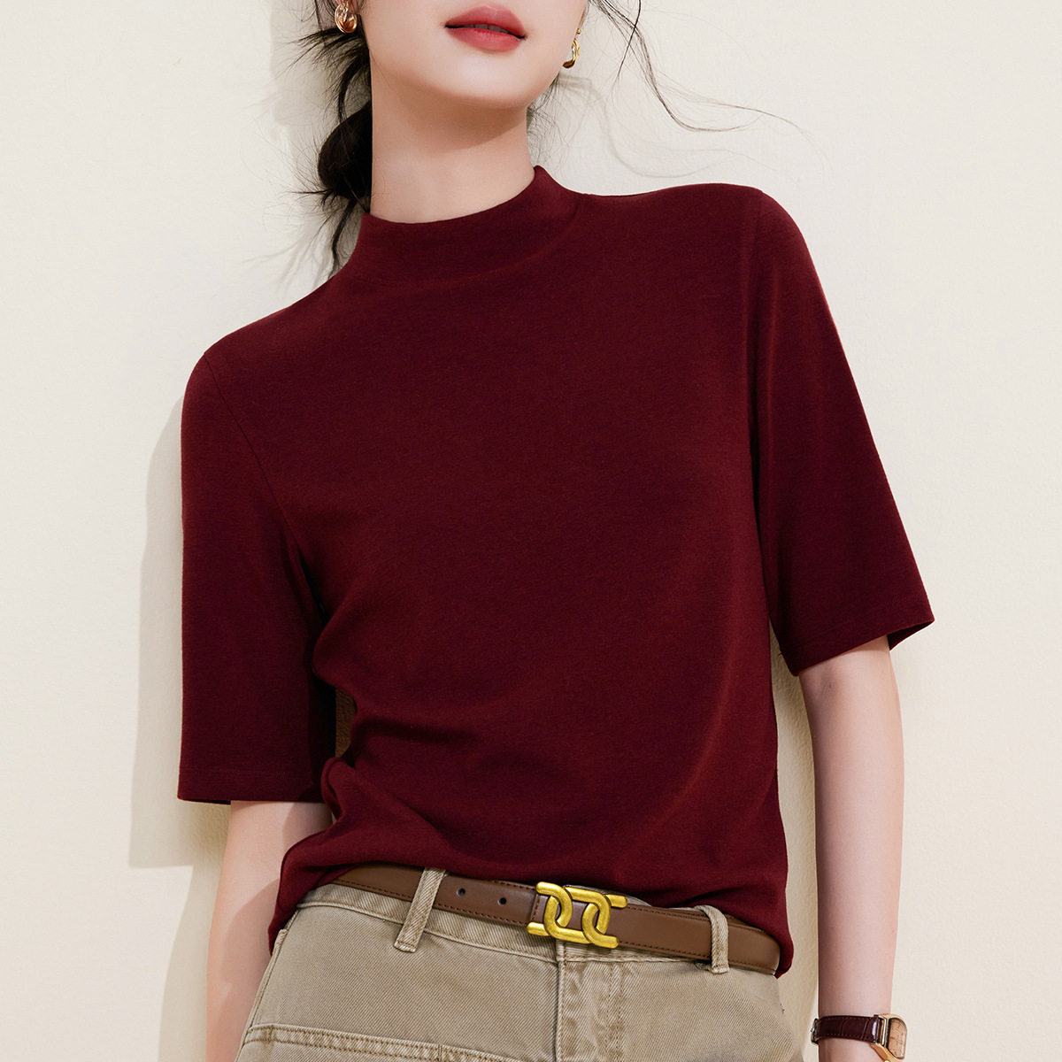 中领【兰精天丝莫代尔】中袖t恤女显瘦五分袖上衣秋打底衫内外搭