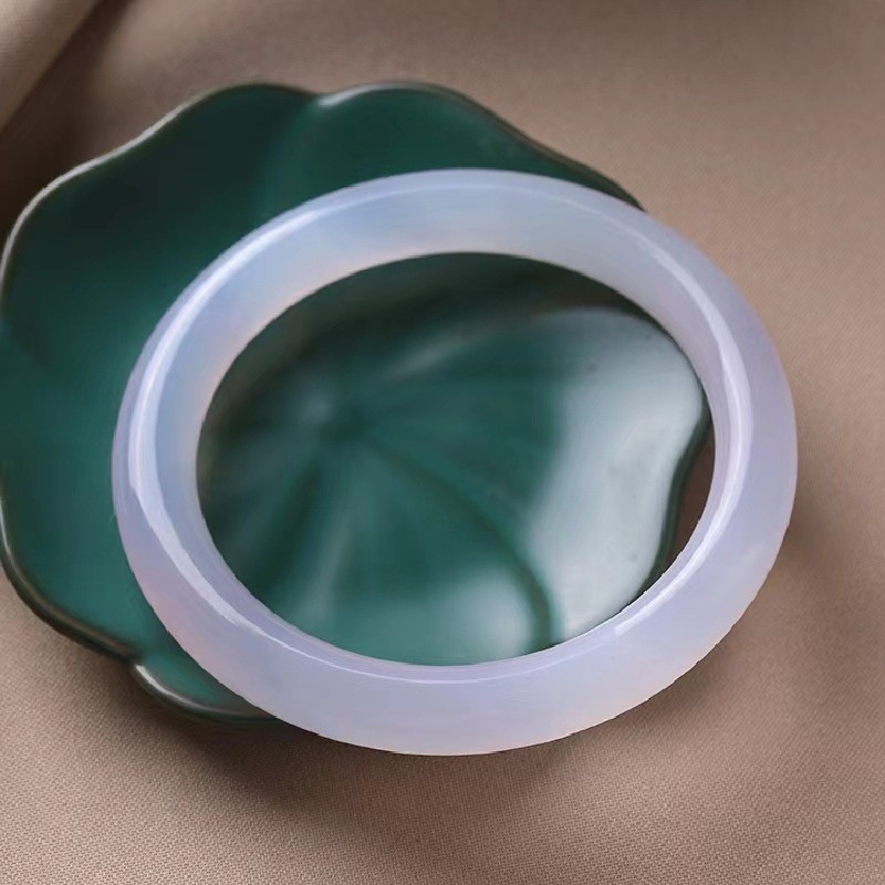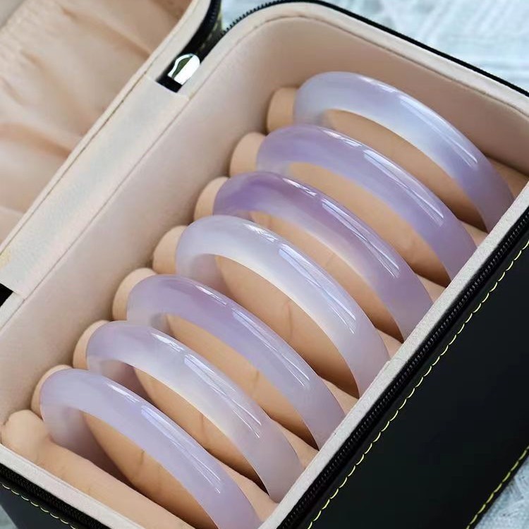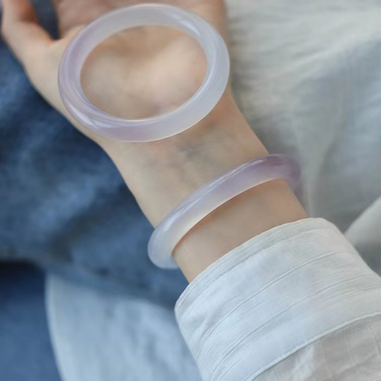 2025天然紫罗兰玉髓手镯2022新品荔枝冻冰种淡紫复古圆条少女玉石