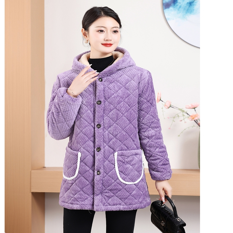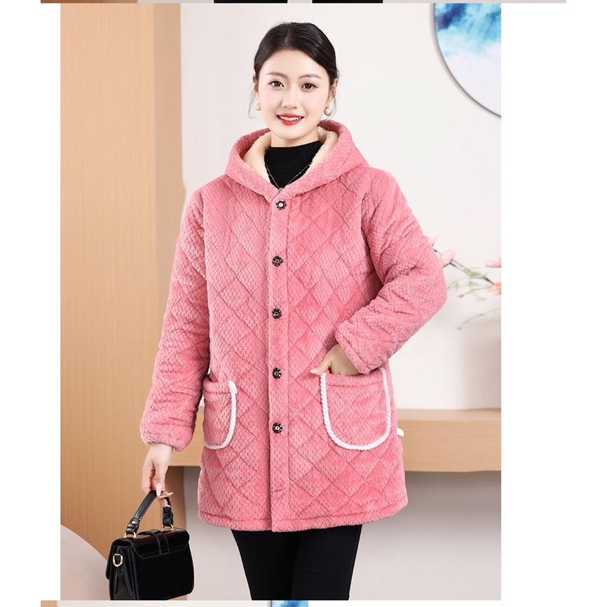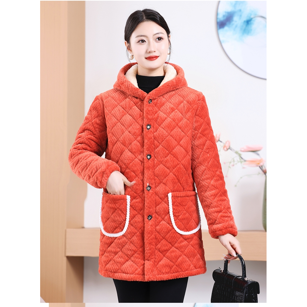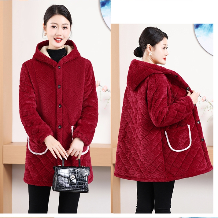 罩衣女加绒加厚妈妈装中长款棉服