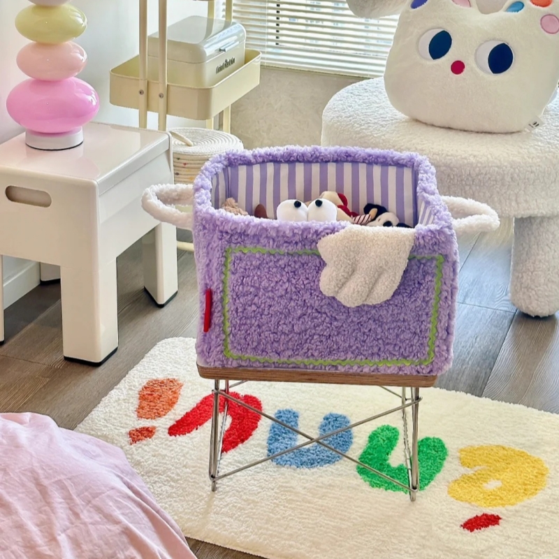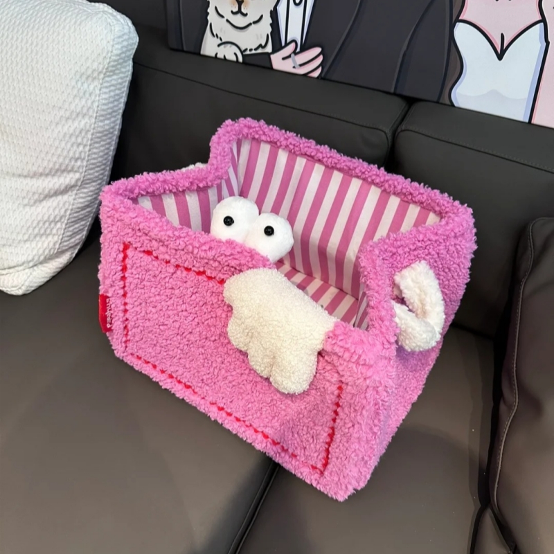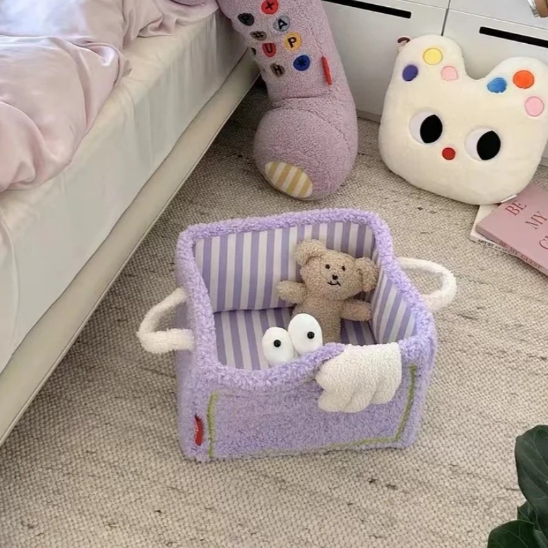 多巴胺收纳筐可爱卡通毛绒小怪兽玩具零食杂物篮收纳盒大容量颜值