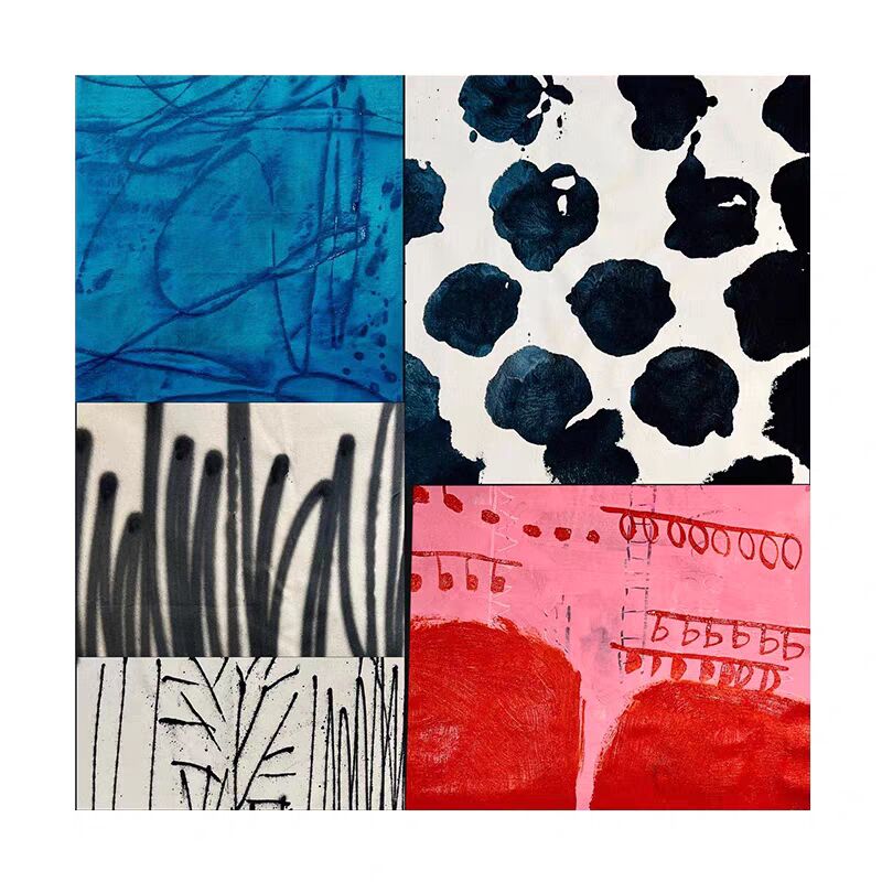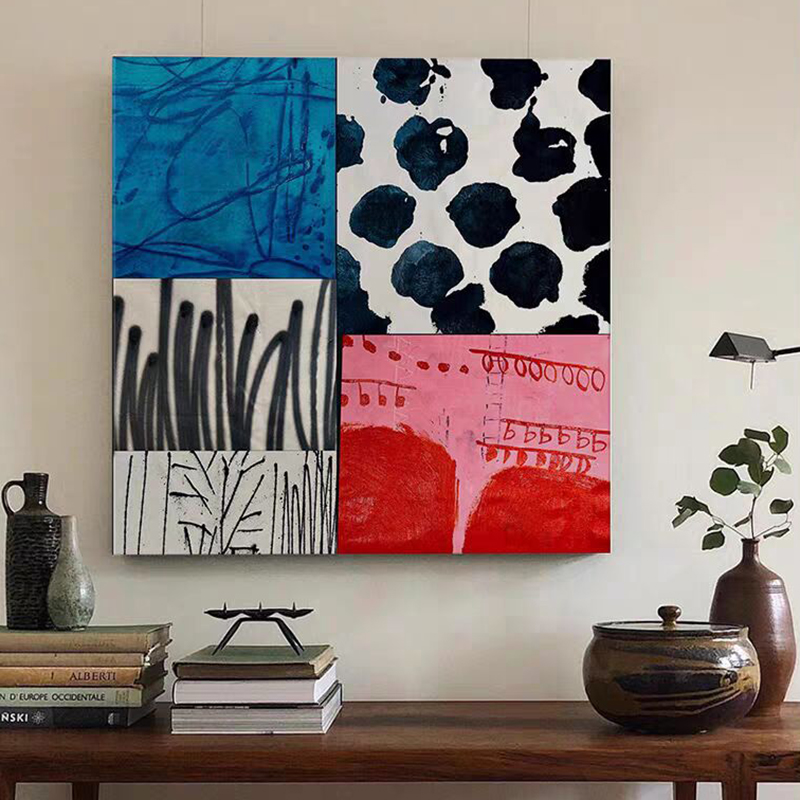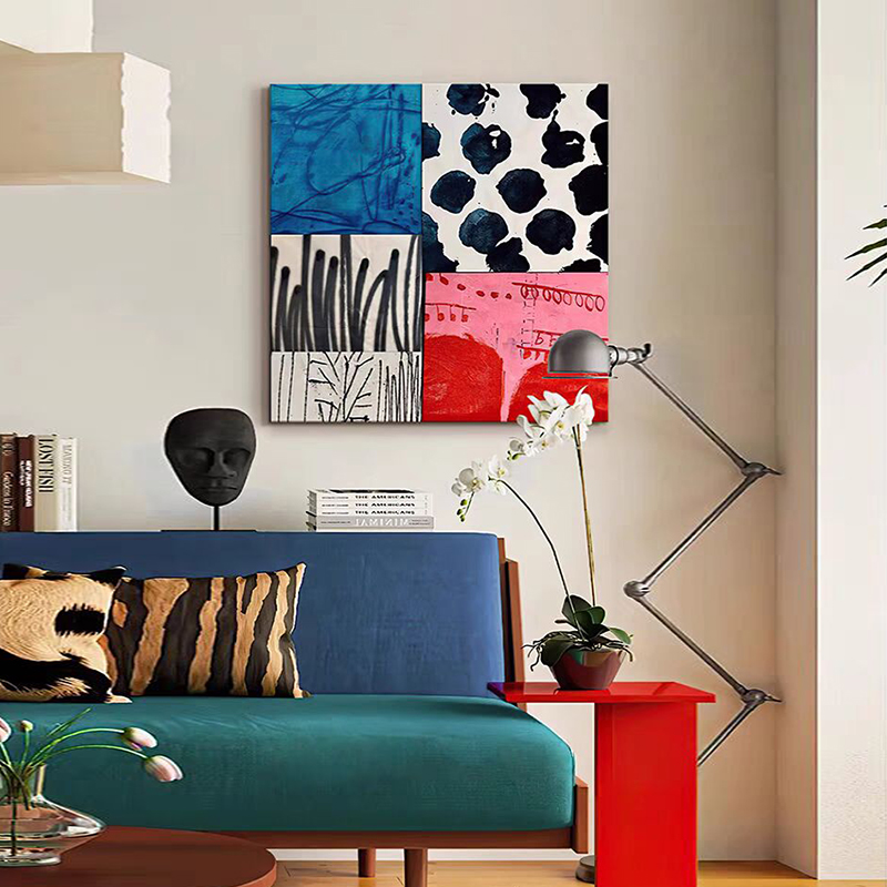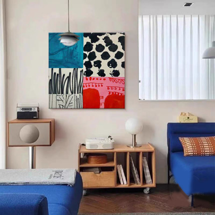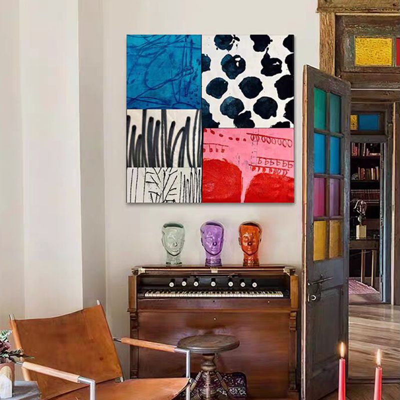 中古风包豪斯餐厅玄关挂画小众装饰画撞色抽象彩色无框画民宿壁画