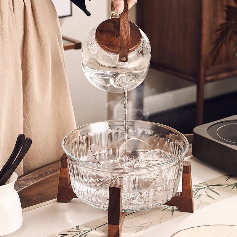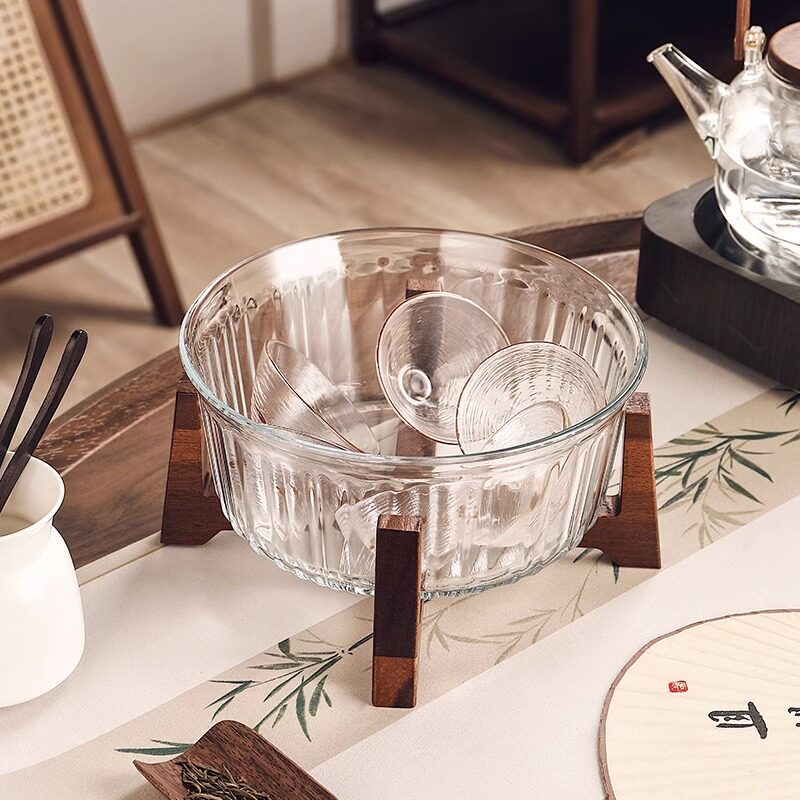 中式高档玻璃茶洗缸废水缸大号茶盂带盖茶具配件茶泡台收纳碗盆