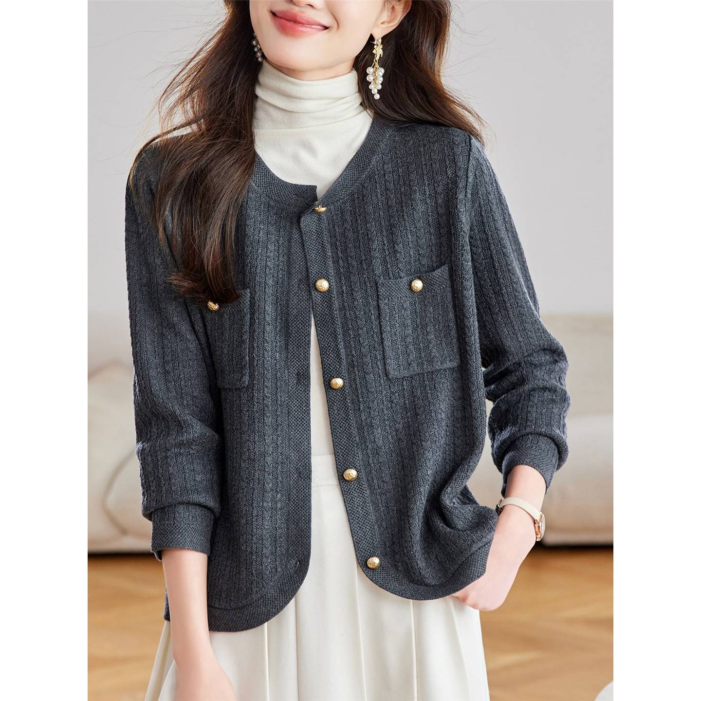 黑色宽松圆领小香风短款针织衫毛衣外套女春秋外搭开衫高级感披肩