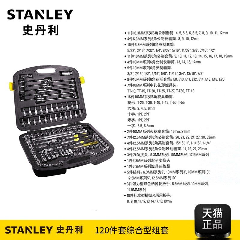 史丹利120件汽修汽保工具套装套筒棘轮扳手五金工具箱91-931-1-22