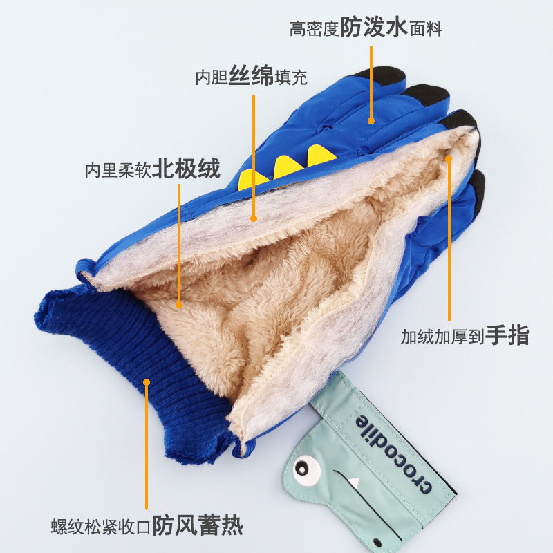 4-12岁儿童可爱卡通手套加绒加厚男童女童滑雪中大童玩雪分指保暖