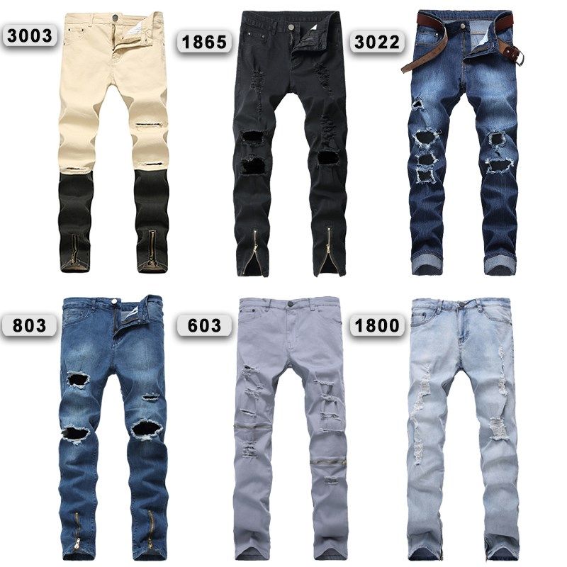 高街黑色膝盖破洞牛仔裤百搭乞丐长裤潮流男士弹力拉链修身小脚裤