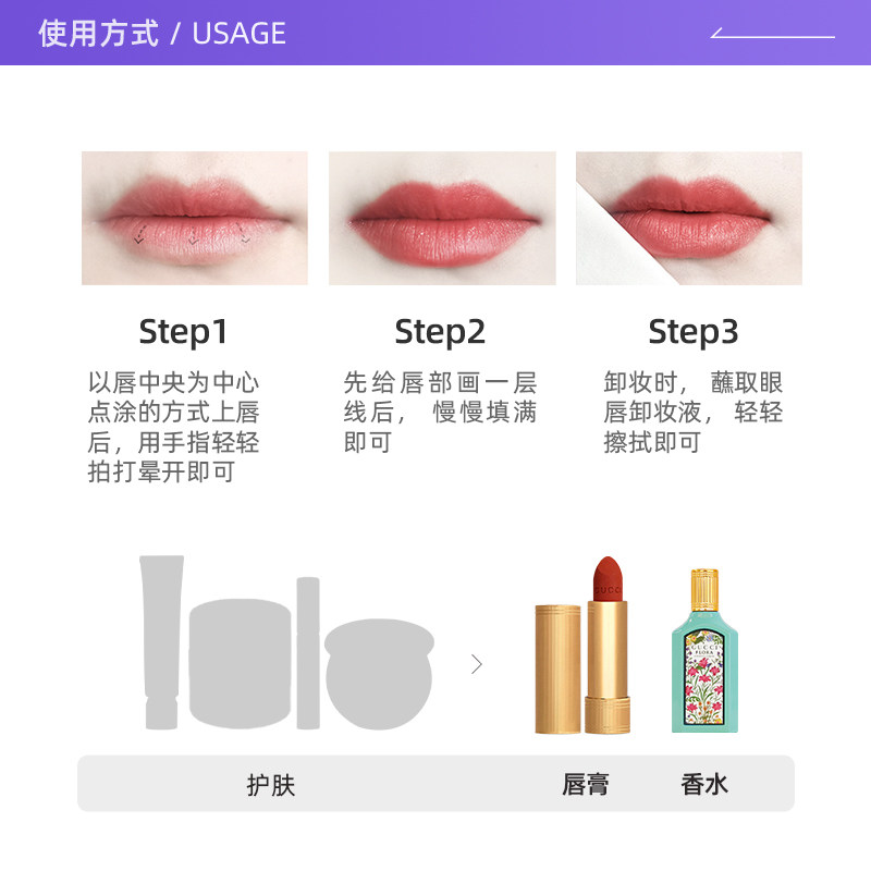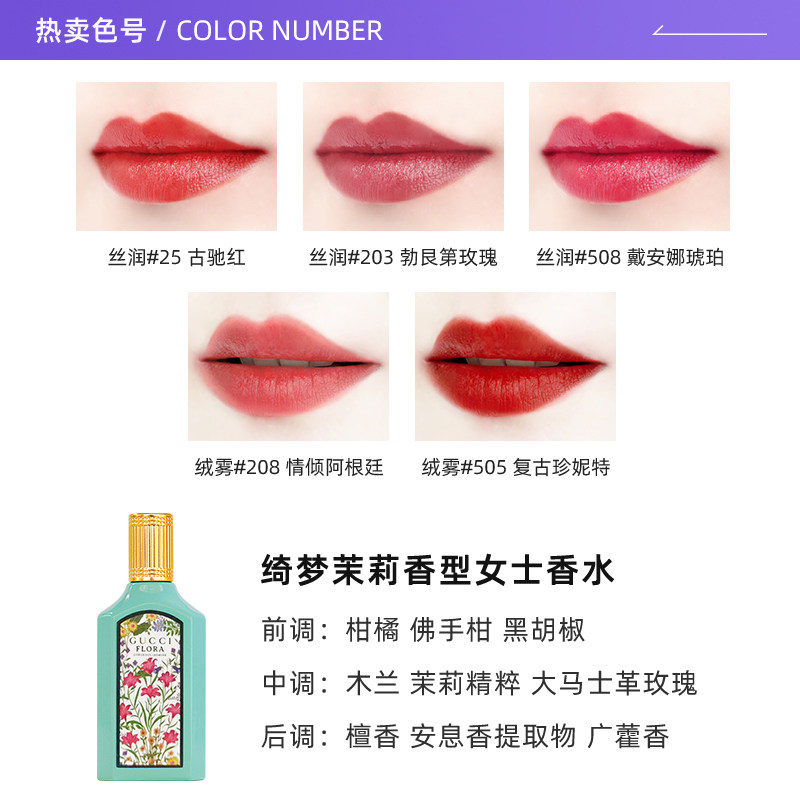 【自营】Gucci/古驰口红香水礼盒哑光金管505碎花25持久防水显白